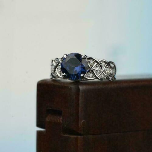 2.00Ct Corte Redondo Azul Tanzanita Compromiso Solitario Anillo 14K Oro Blanco