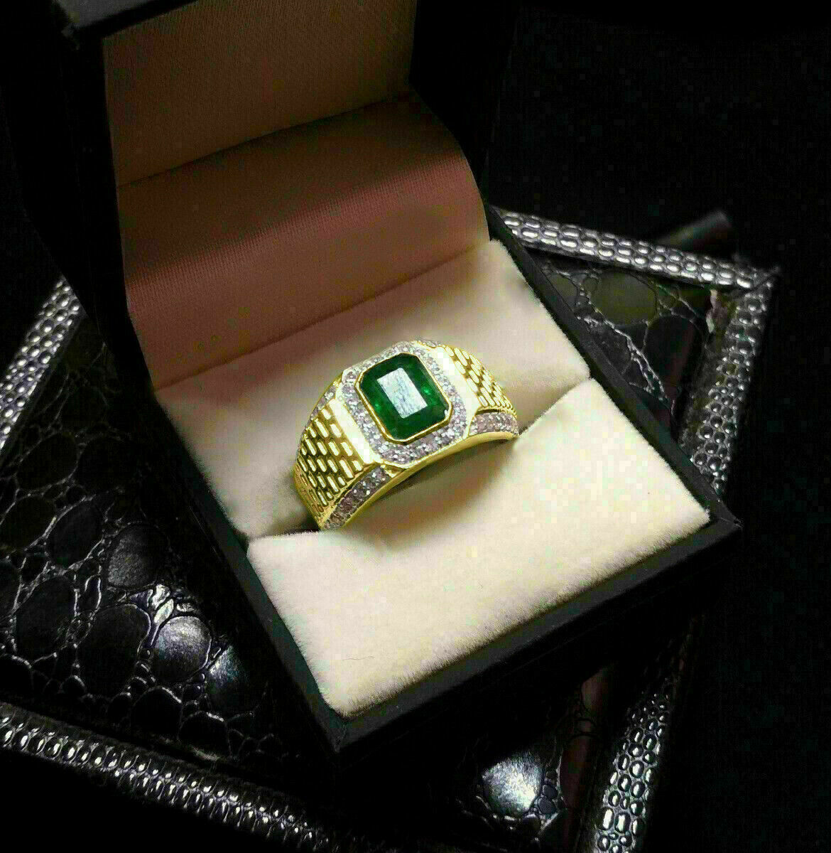 2Ct Green Emerald & Diamond Mens Wedding and 50 similar items