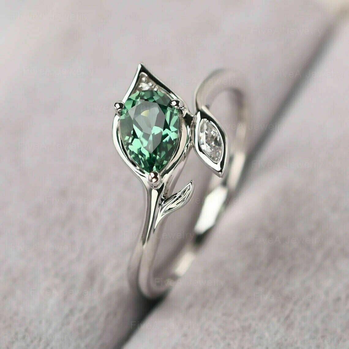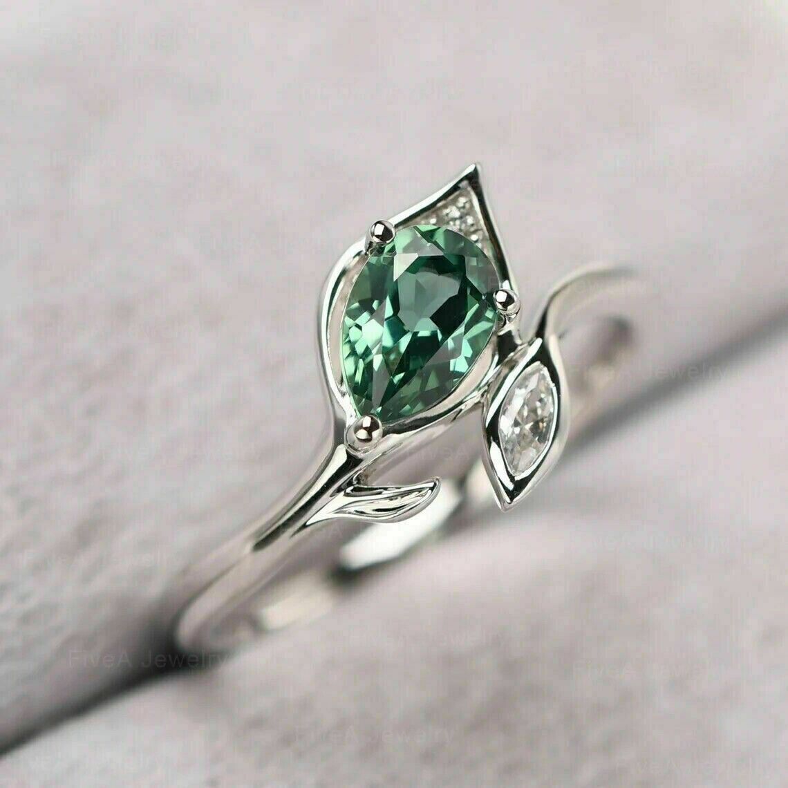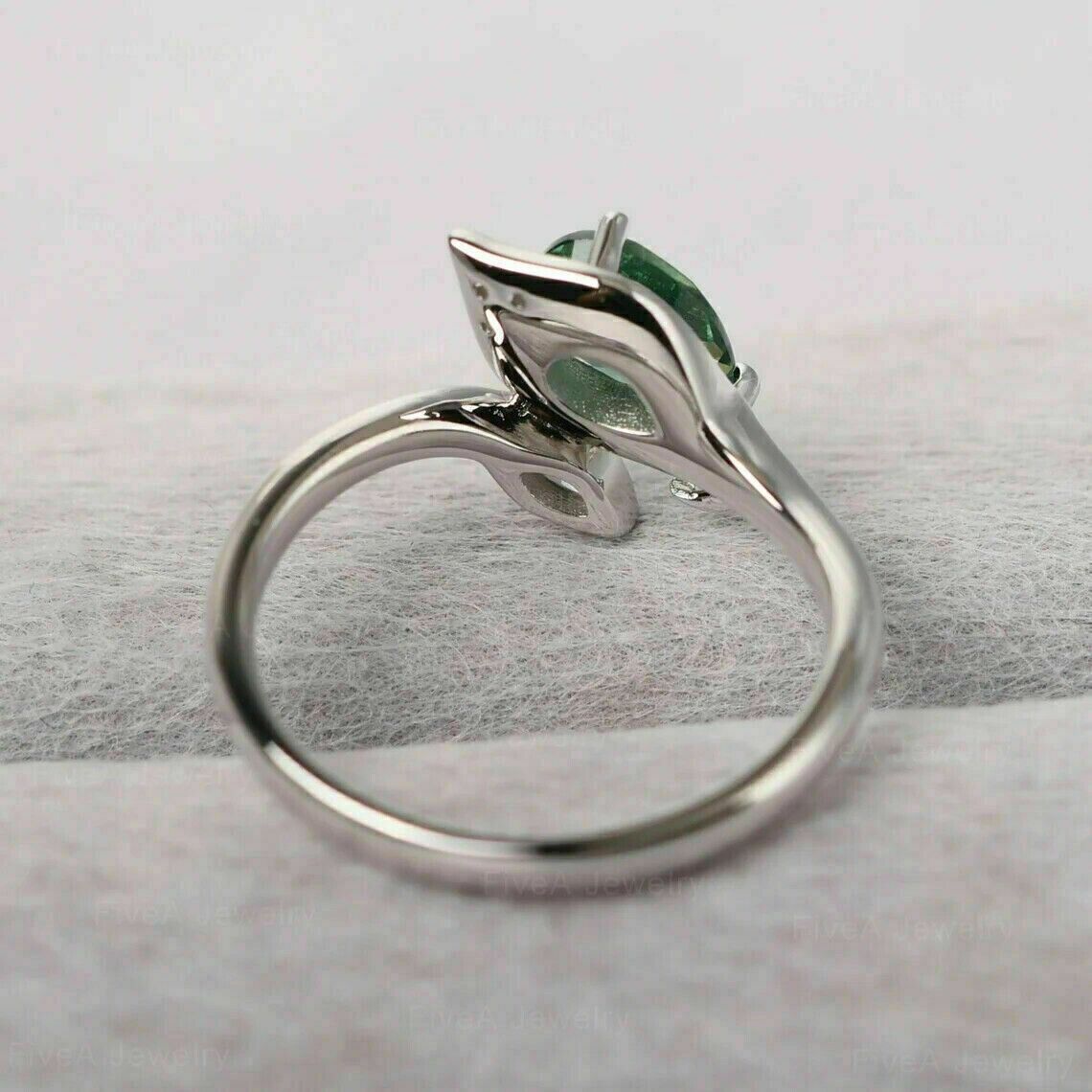 2Ct Tropfenschliff Cz Smaragd Blatt Umgehen Smaragd Ring 14K Weißgold Finish