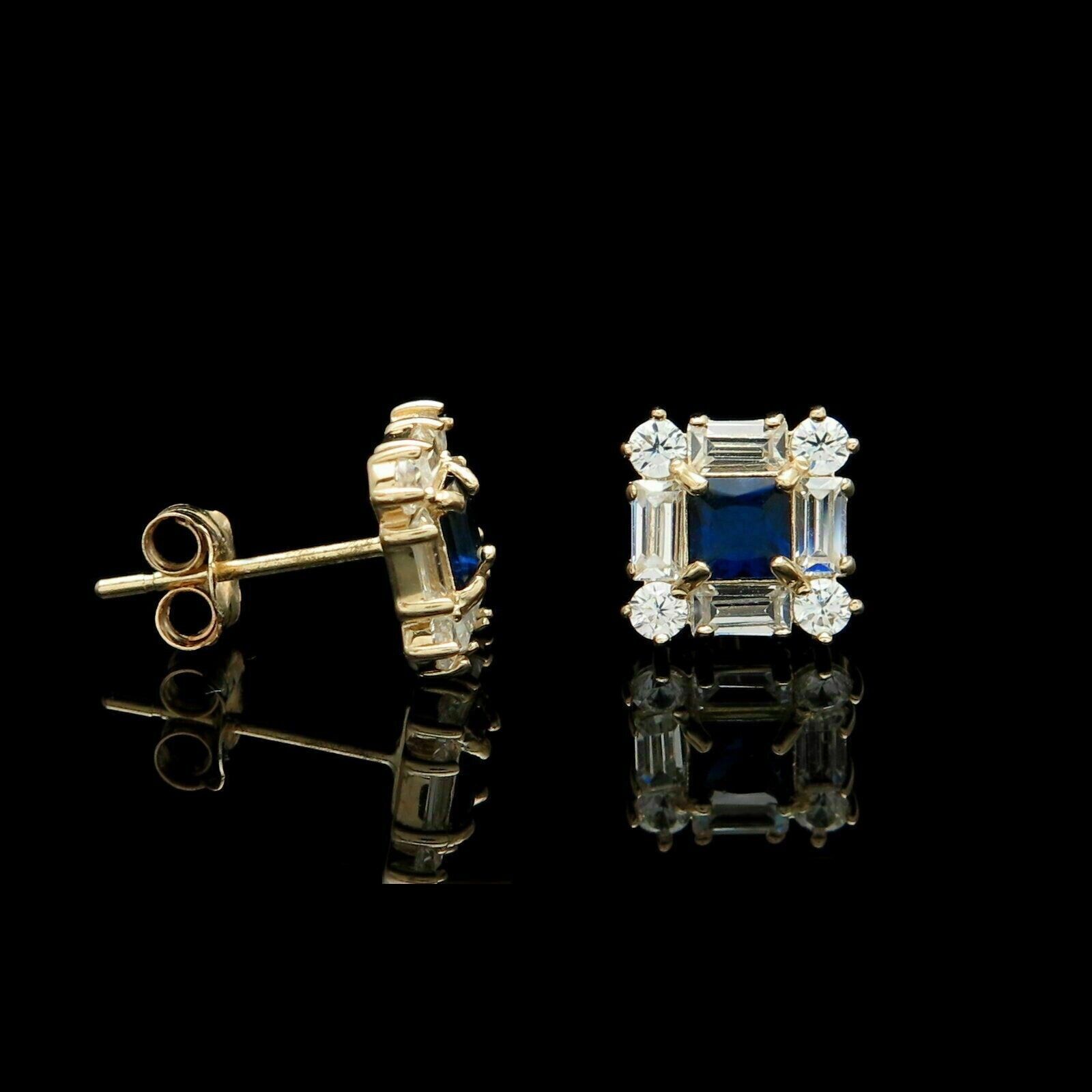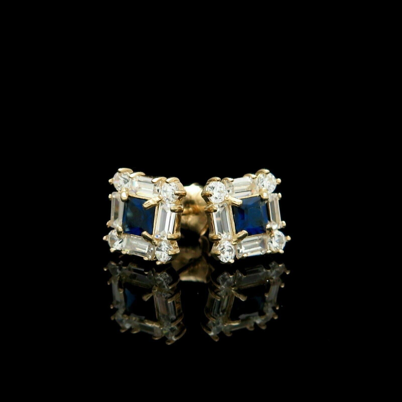 2Ct Princess CZ Blue Sapphire Diamond Stud Earrings In 14K Yellow Gold Finish
