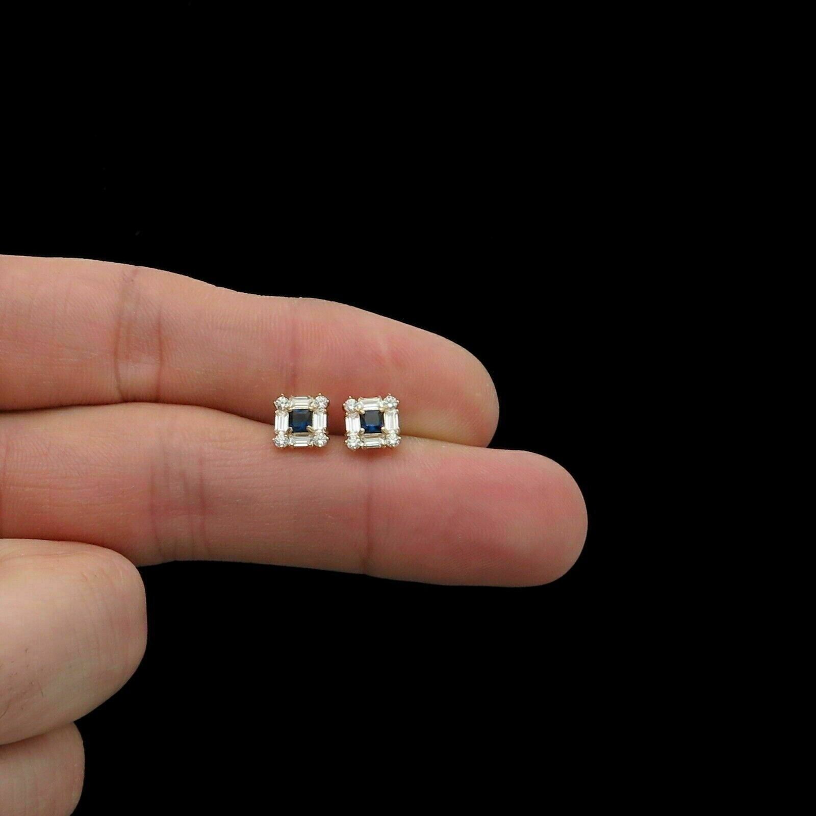 2Ct Princess CZ Blue Sapphire & Diamond Stud and similar items