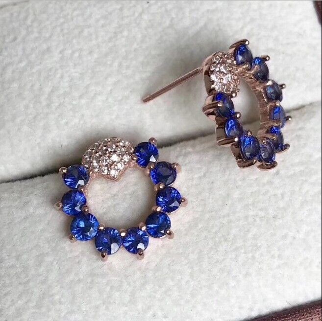 1.10Ct Round Cut CZ Blue Diamond Brilliant Stud Earrings 14K Rose Gold Finish