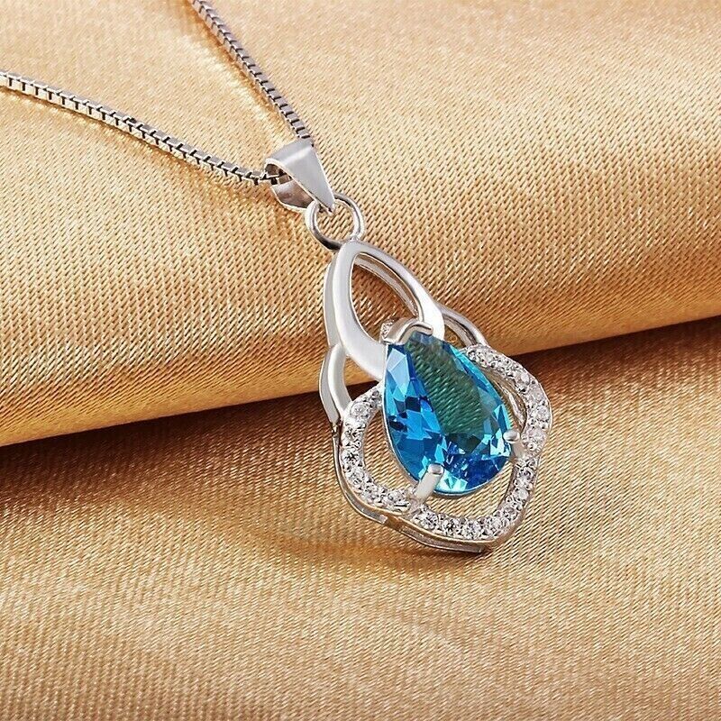 2Ct Corte Pera Cc Topacio Azul Halo Colgante and 50 similar items