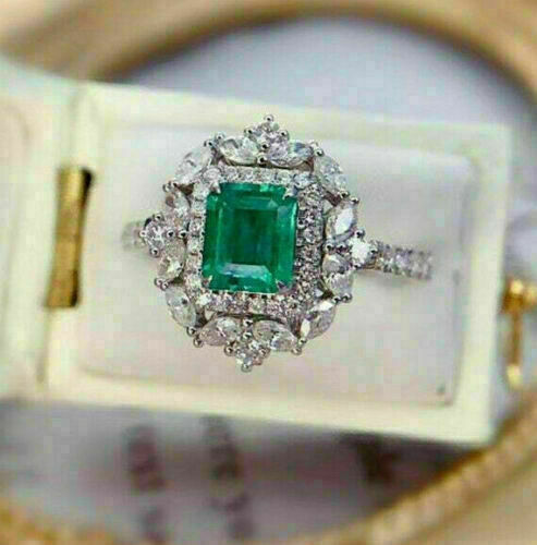3Ct Smeraldo Taglio Verde Halo Anello di and 50 similar items