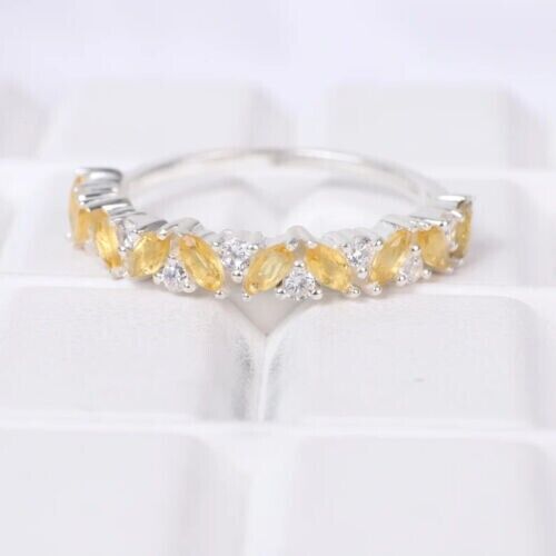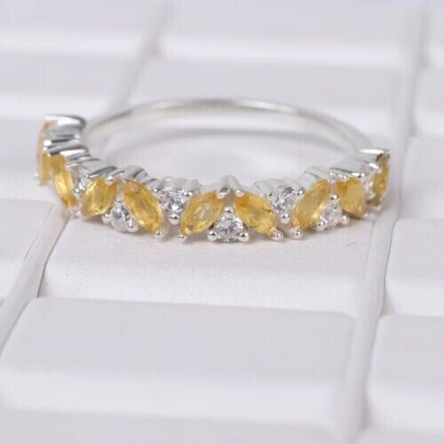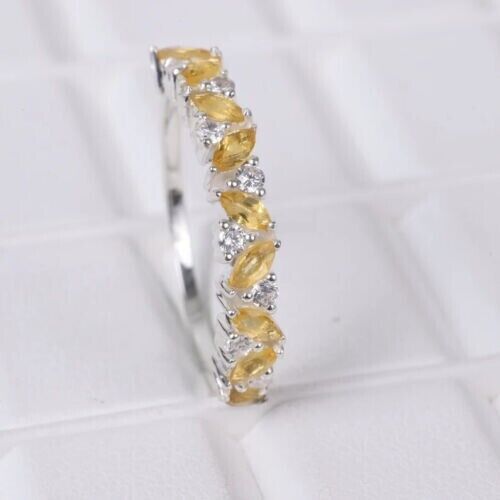 2Ct Marquise Schnitt Cz Citrin Halbe Ewigkeit Hochzeit Ring 14K Weißgold Finish