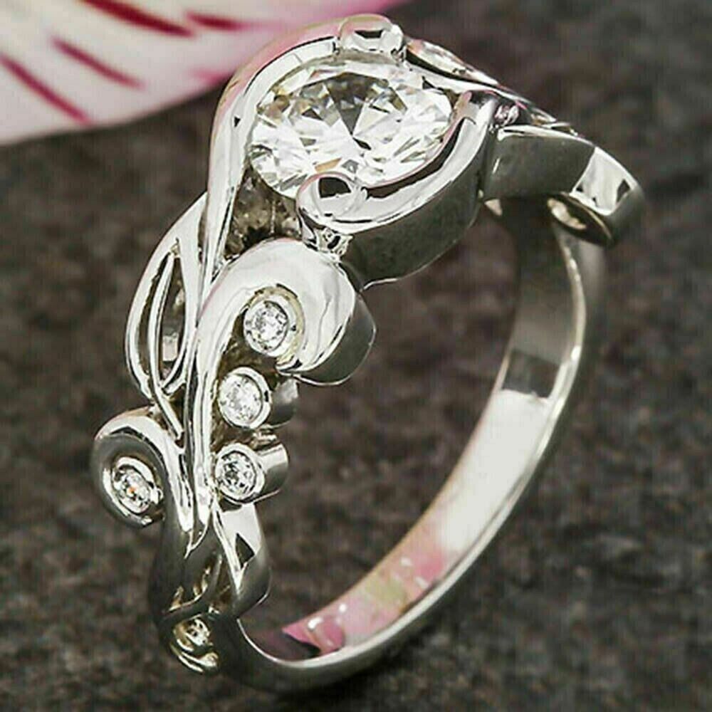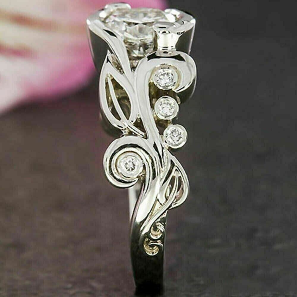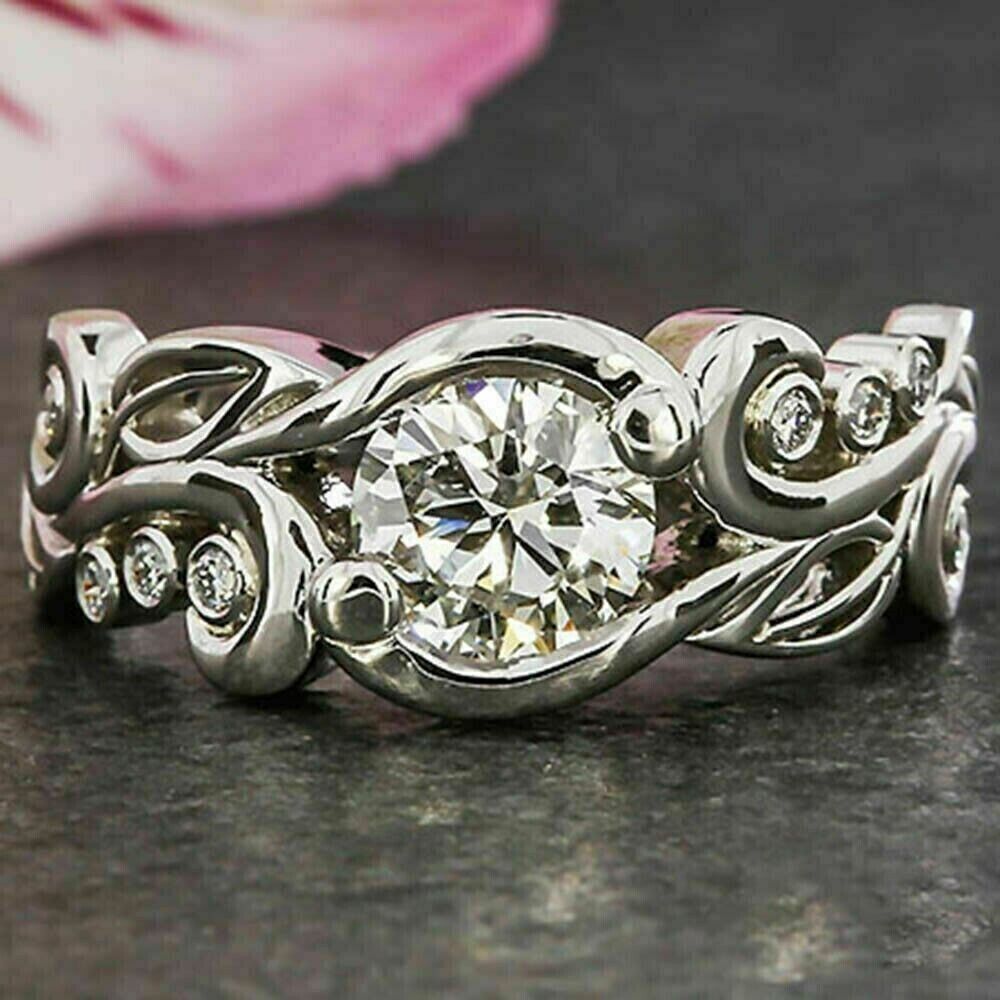 2Ct Rund Schliff Zirkonia Diamant Vintage Verlobungsring 14K Weißgold Finish