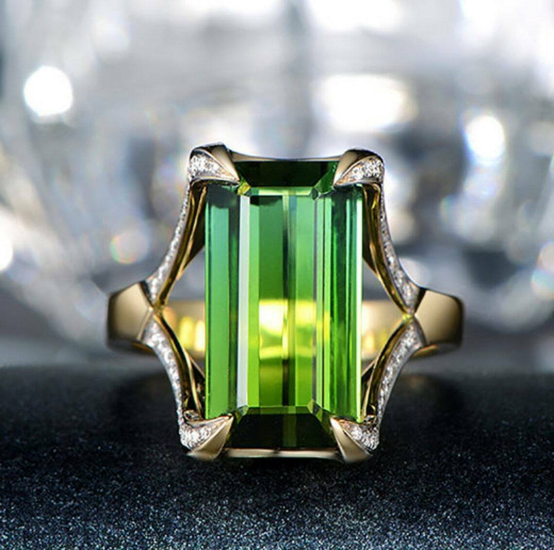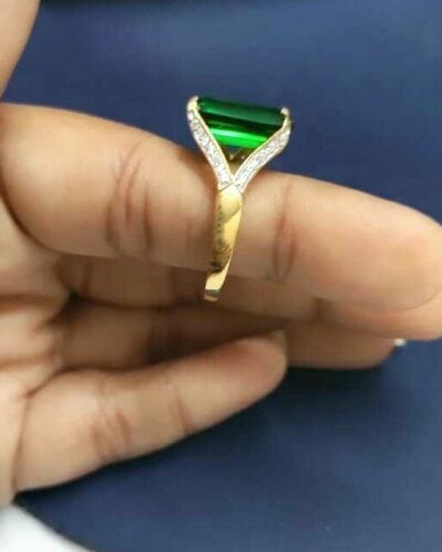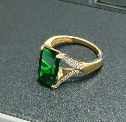 3Ct Smaragd Schliff Grün Smaragd Solitaire Verlobungsring 14K Gelb Gold