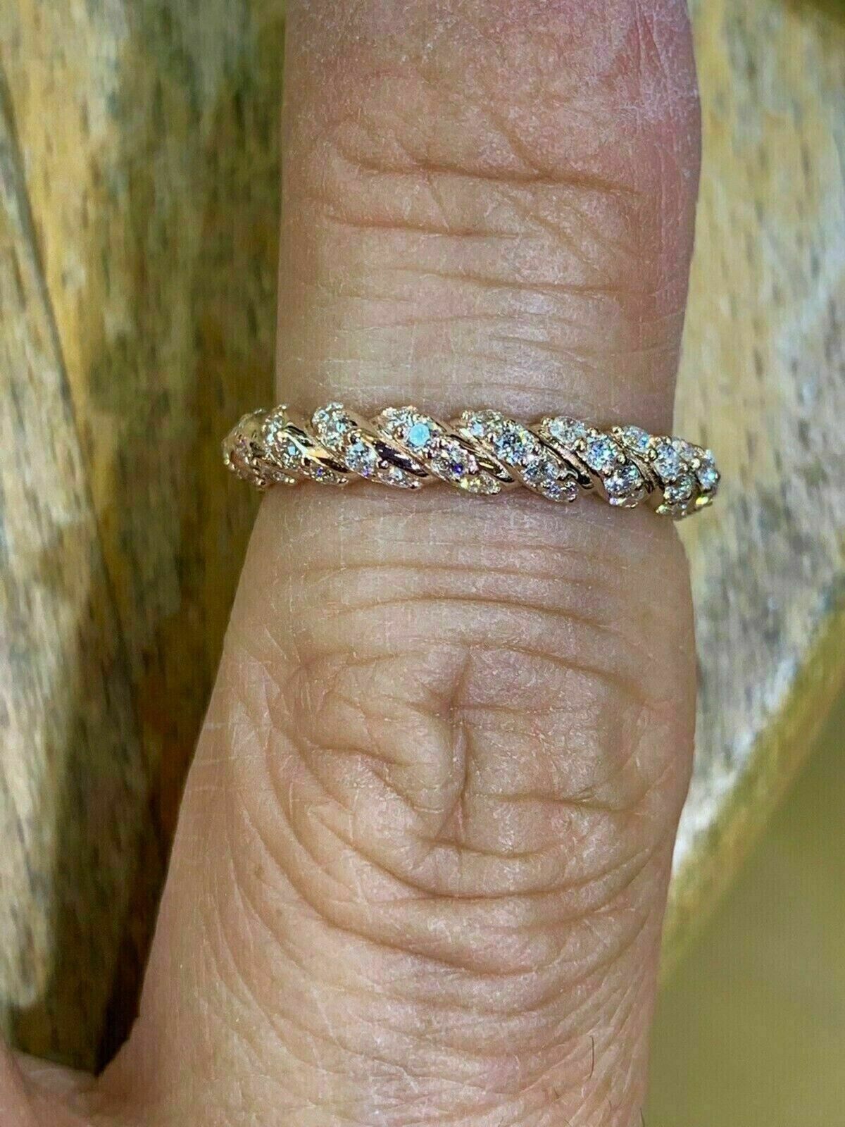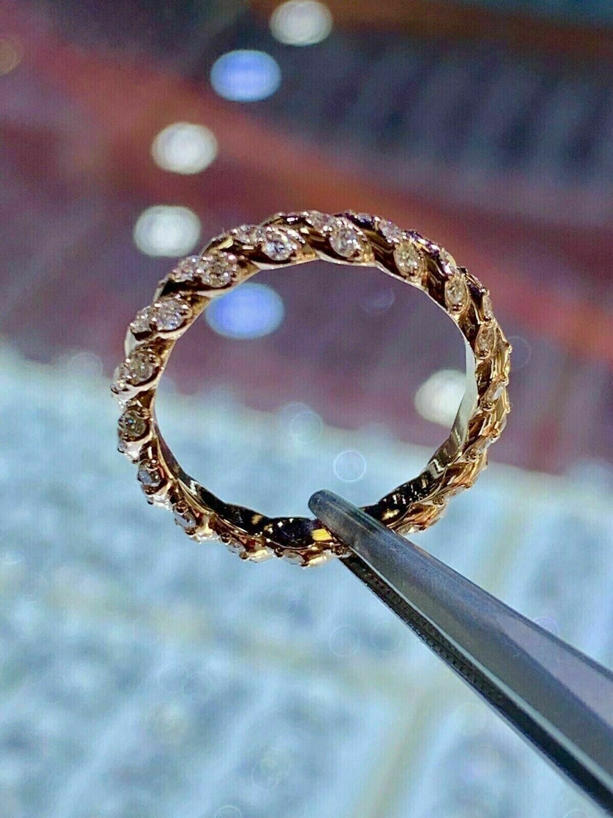 2Ct Rund Schliff Zirkonia Diamant Volle Ewigkeit Verlobung Band 14K Rose Gold