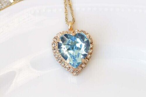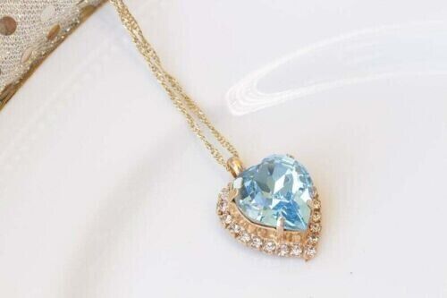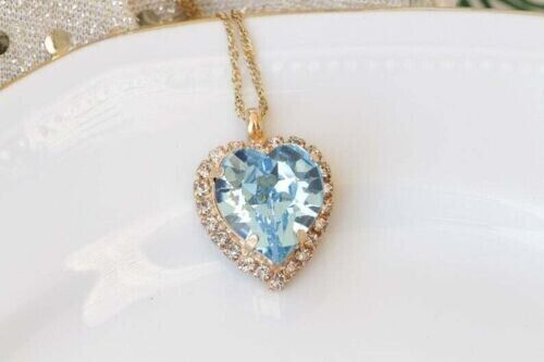 3Ct Taglio a Cuore Zirconia Cubica Topazio Blu Diamante Halo Ciondolo 14k Giallo