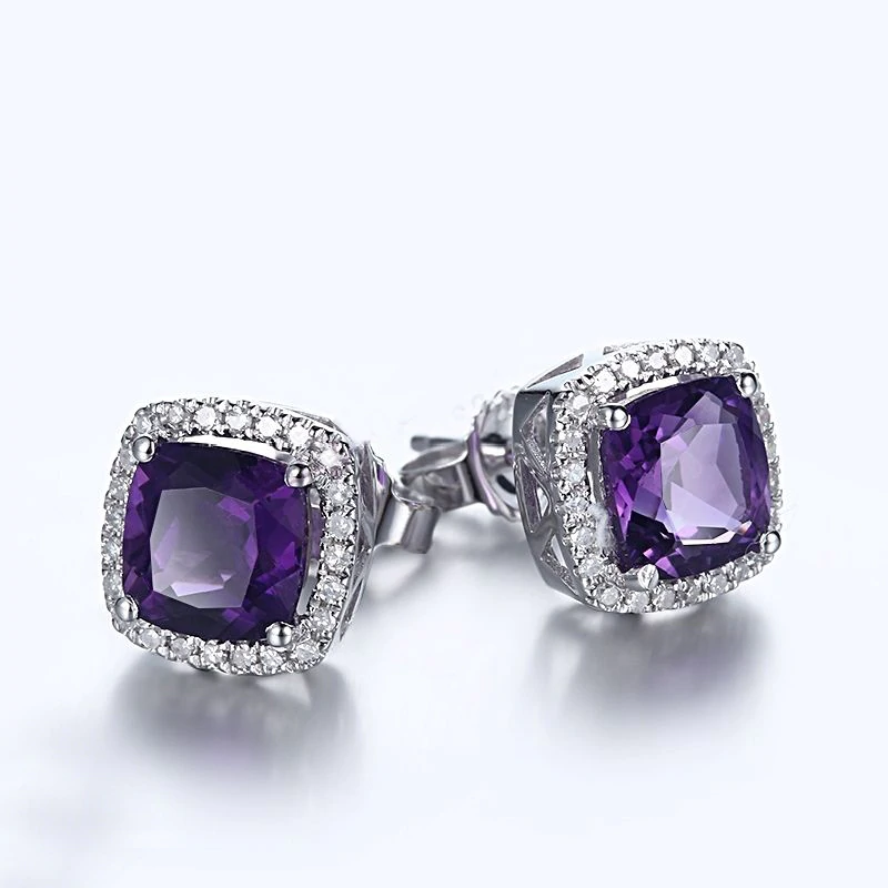 3Ct Kissen Schnitt Amethyst Heiligenschein Ohrstecker 14K Weißgold Finish