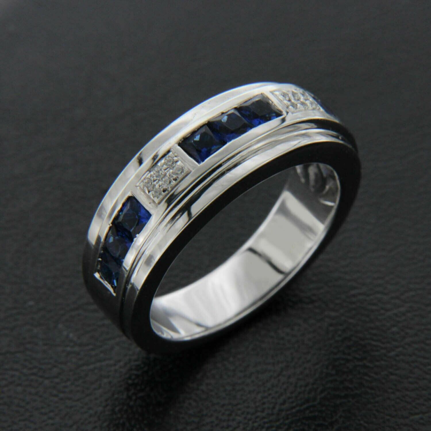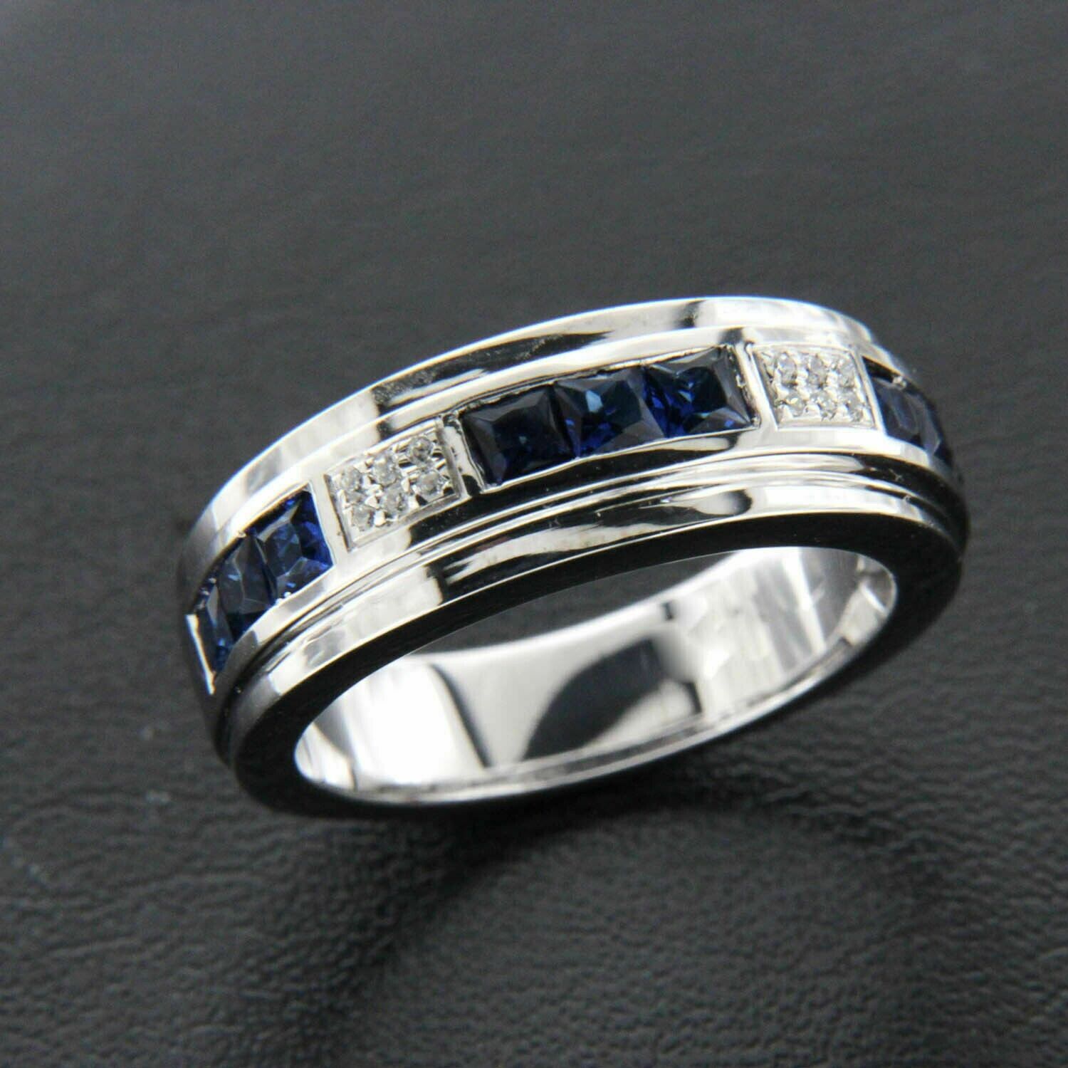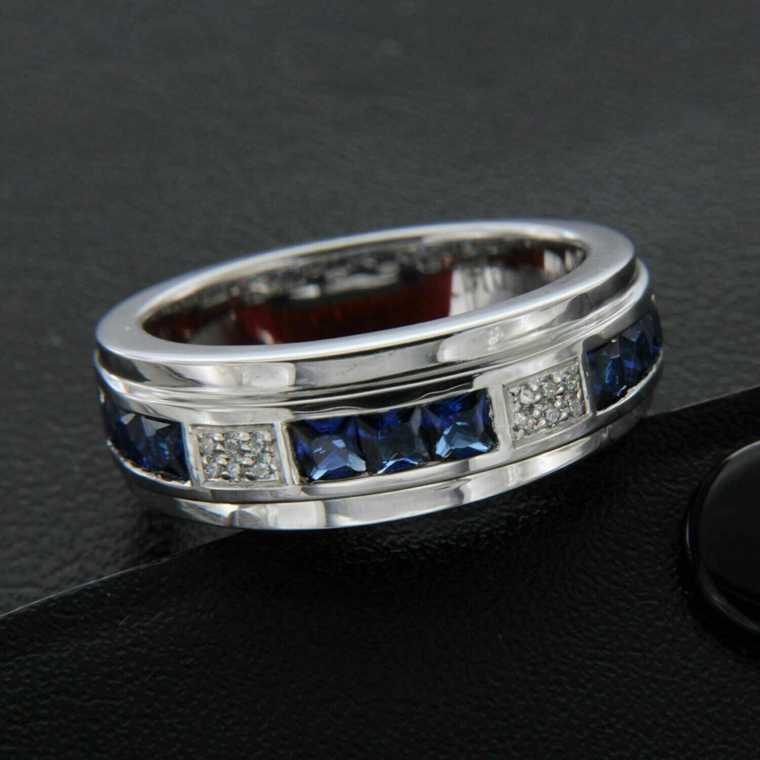 0.50CT Princesa Circonita Zafiro & Diamante Hombres Alianza 14k Oro Blanco Final
