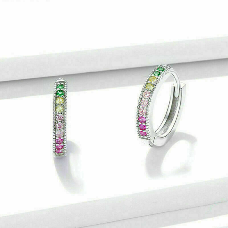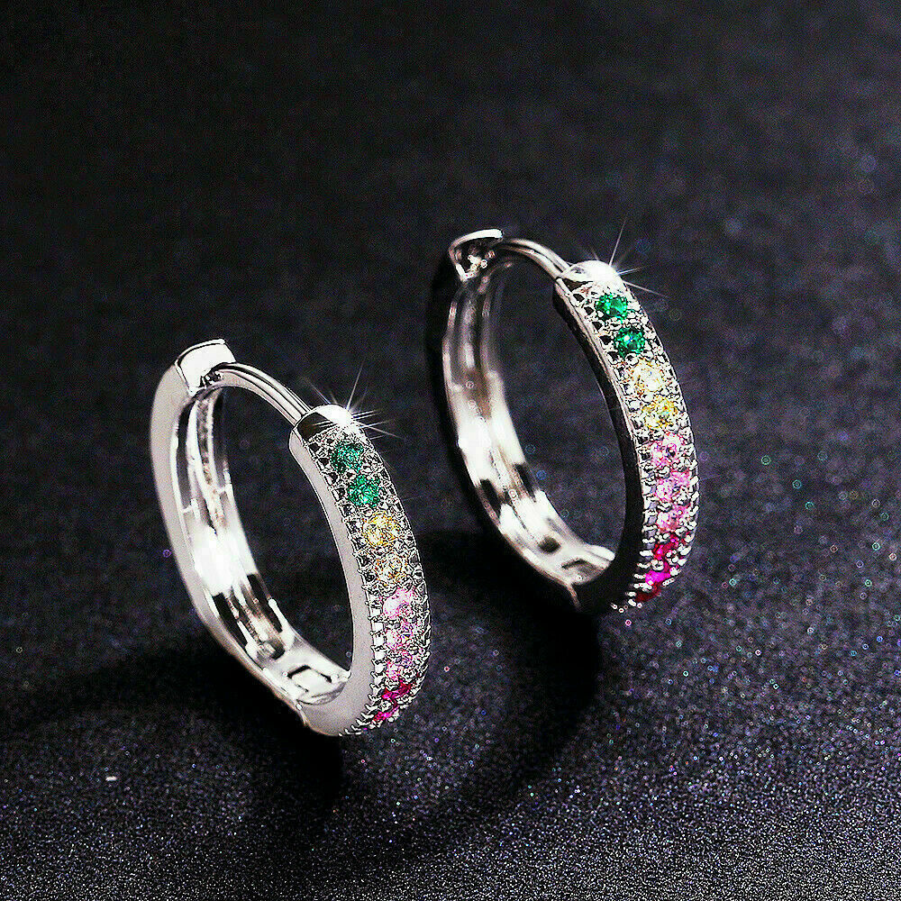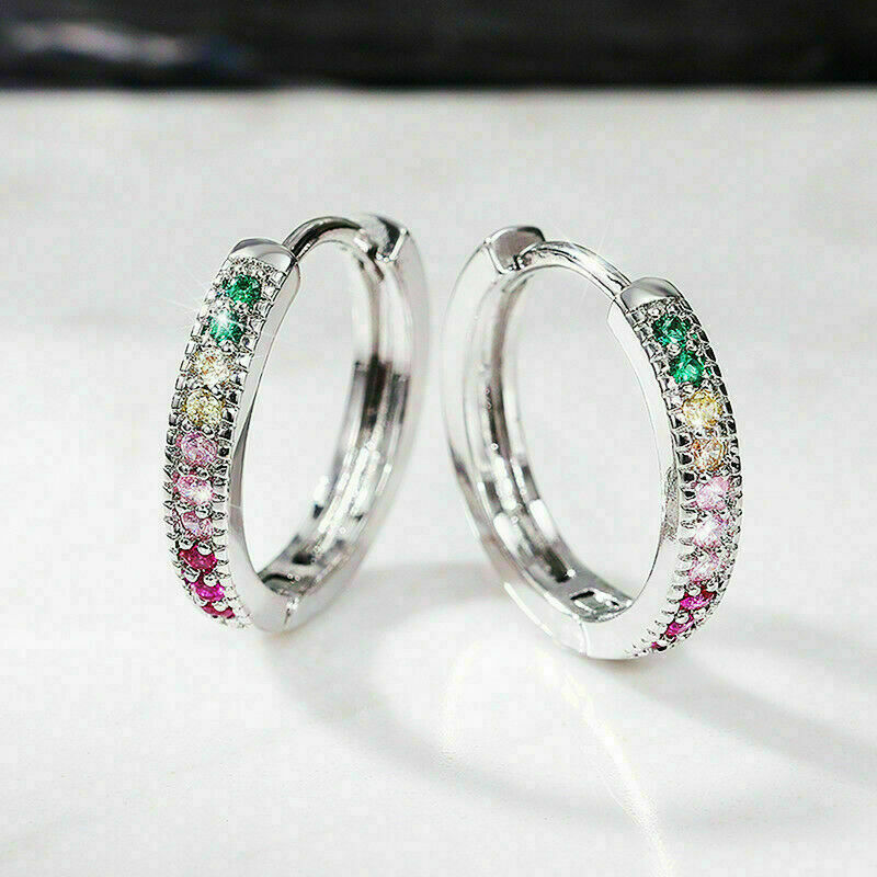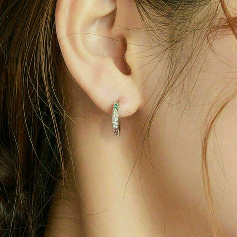 2Ct Corte Redondo Varias Gemas Diamante Huggie Aro Aretes 14K Oro Blanco Acabado