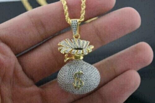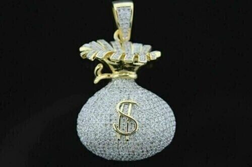 2.50Ct Diamante Redondo Lab-Created Dolar Moneda Bolsa Colgante 14K Dorado Sobre
