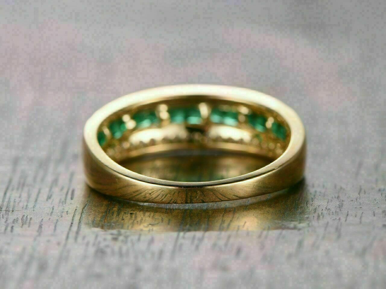 2Ct Prinzessin Schnitt Grün Smaragd Ehering Ring IN 14k Gelbgold Finish