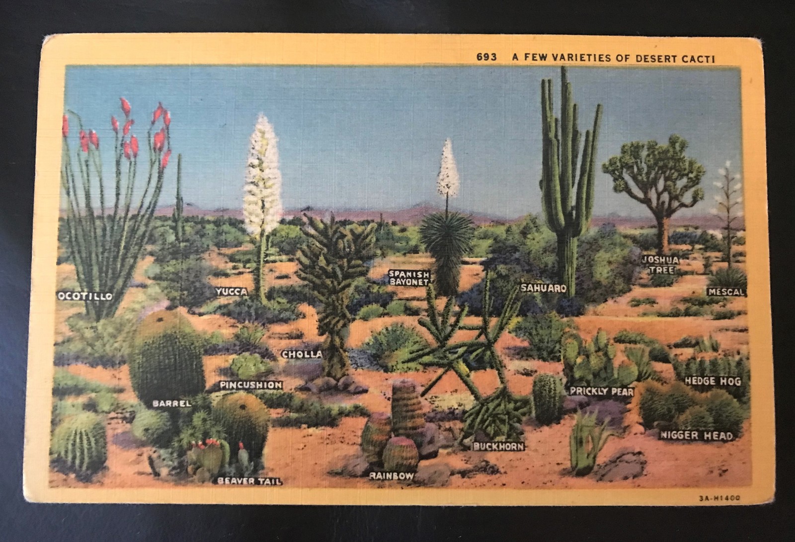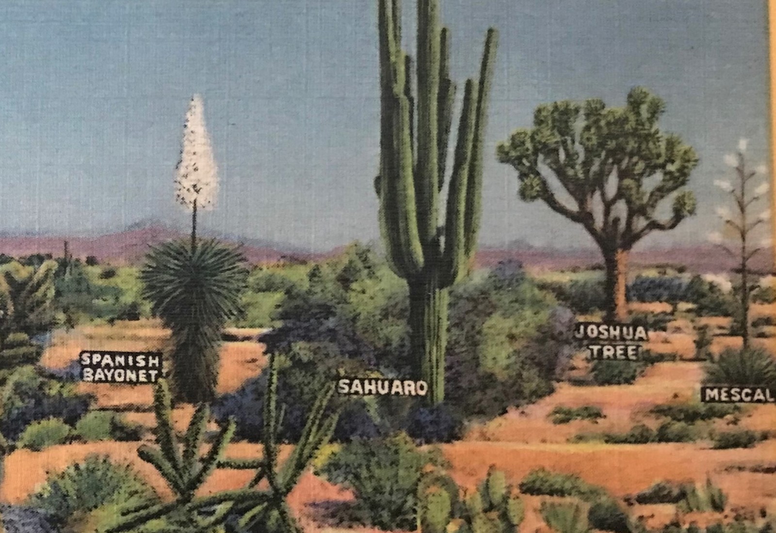 What a great representation of a 1940's Linen Postcard. This one's all about Arizona Cacti and their names. Apparently this Postcard became so popular there were other recreations of it in the 1950's and 1960's. This ones from the 1940's.