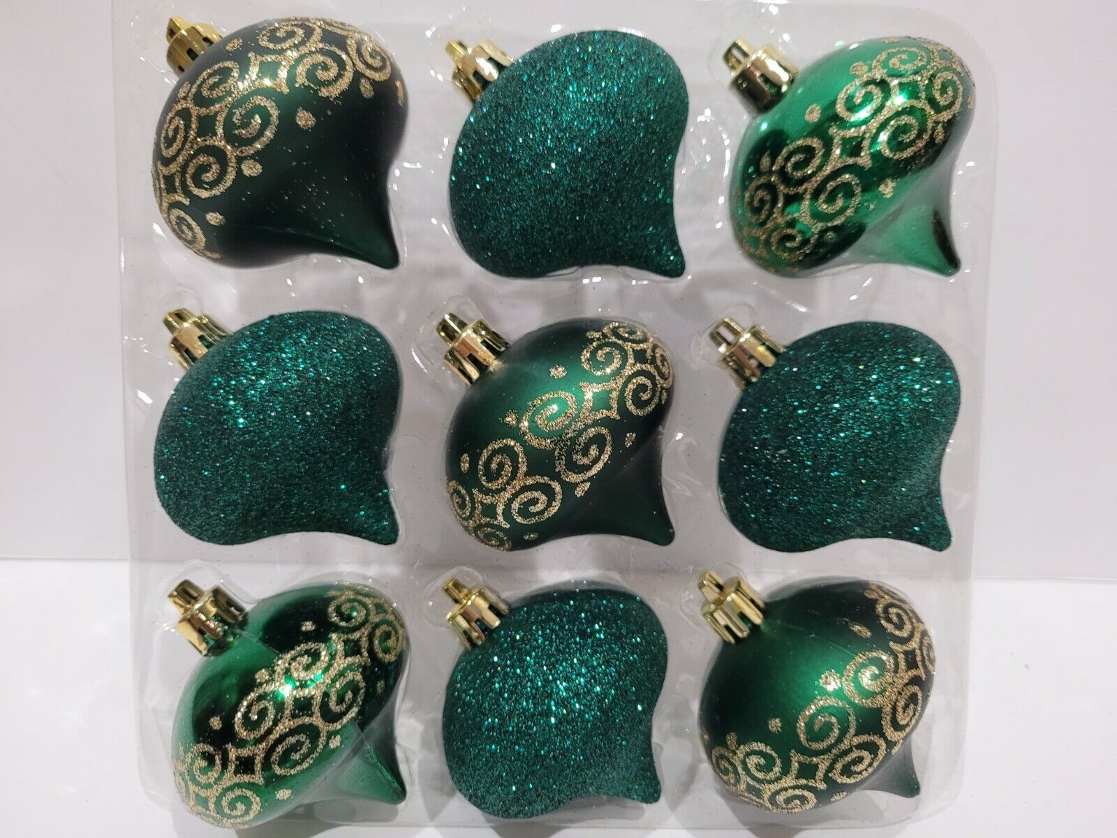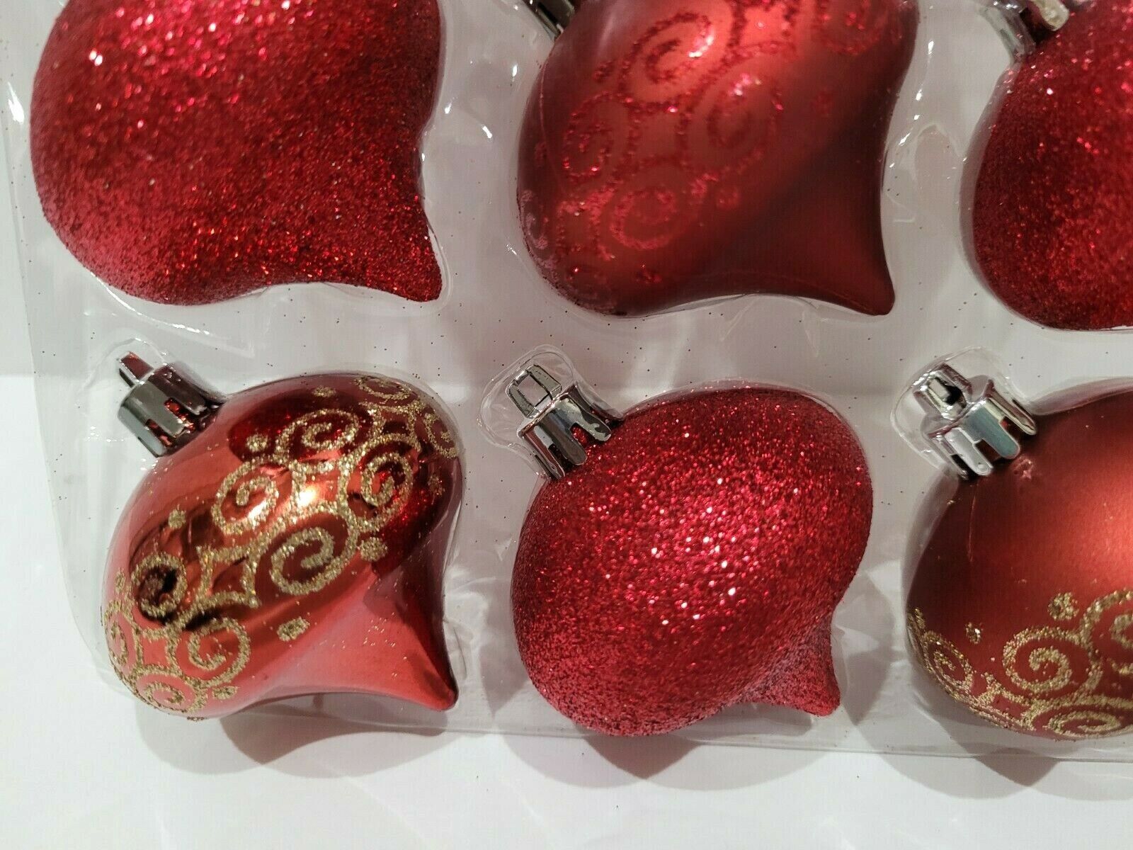 Up for sale are these super adorable plastic ornaments for your Christmas decor. These are soooo pretty. They are a beautiful red with gold glitter. These would go great on a tree wreath or garland. You will receive a set of 9 just like the picture shows. These are must have for your Christmas tree. These measure approx 2.5" (not including gold square tip). These are new but will not come in original box or clear holder to be able to ship in a smaller box and keep shipping cost down. I also have these in green.