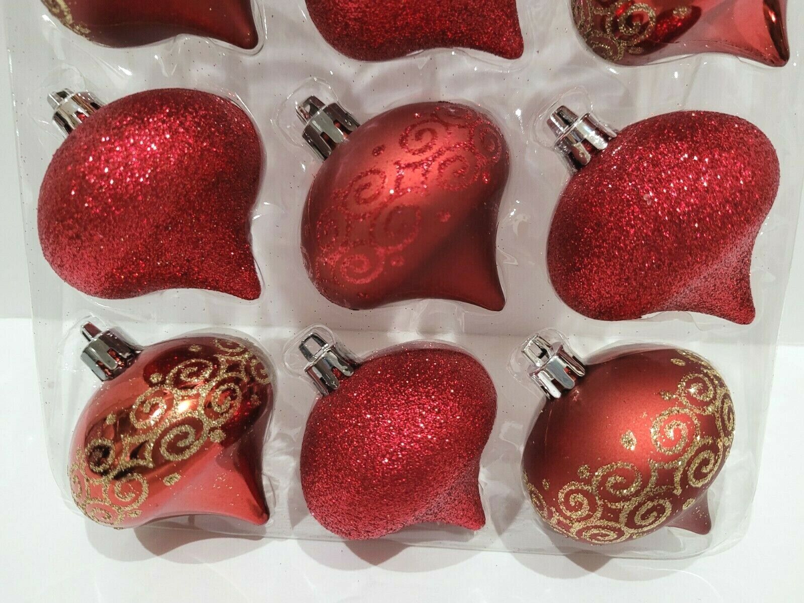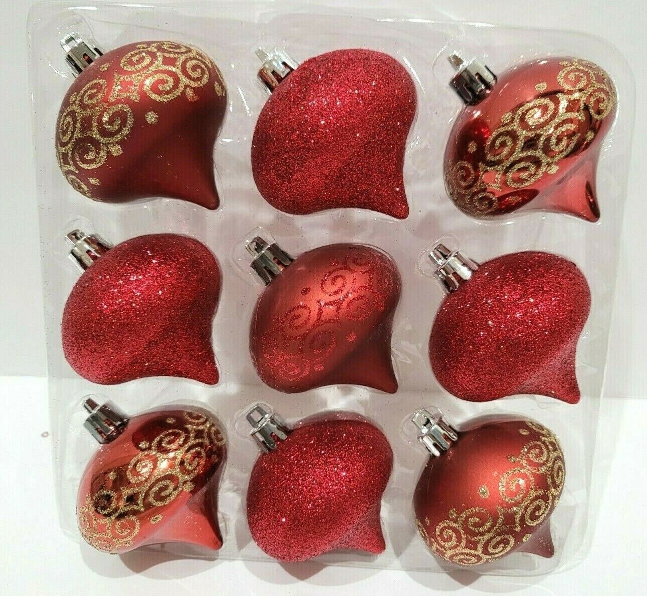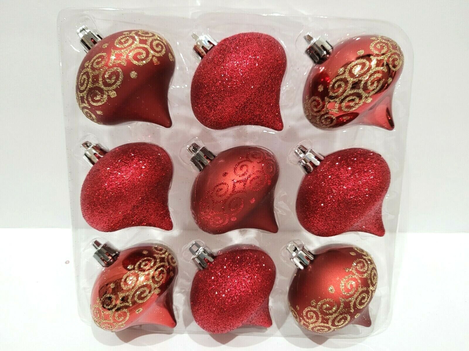 (9) Christmas Red Gold Glitter Plastic Tree Ornaments 2.5" Home Decor
