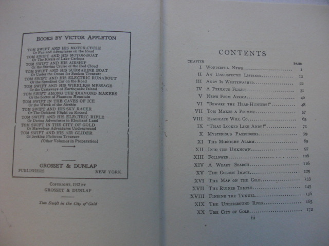 . Tom Swift in the City of Gold or Marvelous Adventures Underground, written by