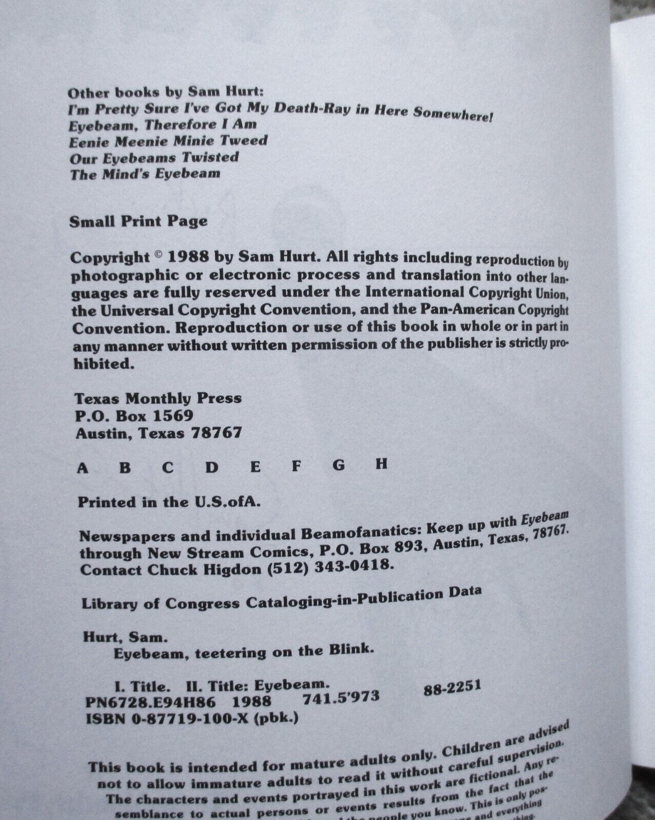 EYEBEAM: TEETERING ON THE BLINK (1988) Sam Hurt SIGNED w/Drawing - 1st Print TPB