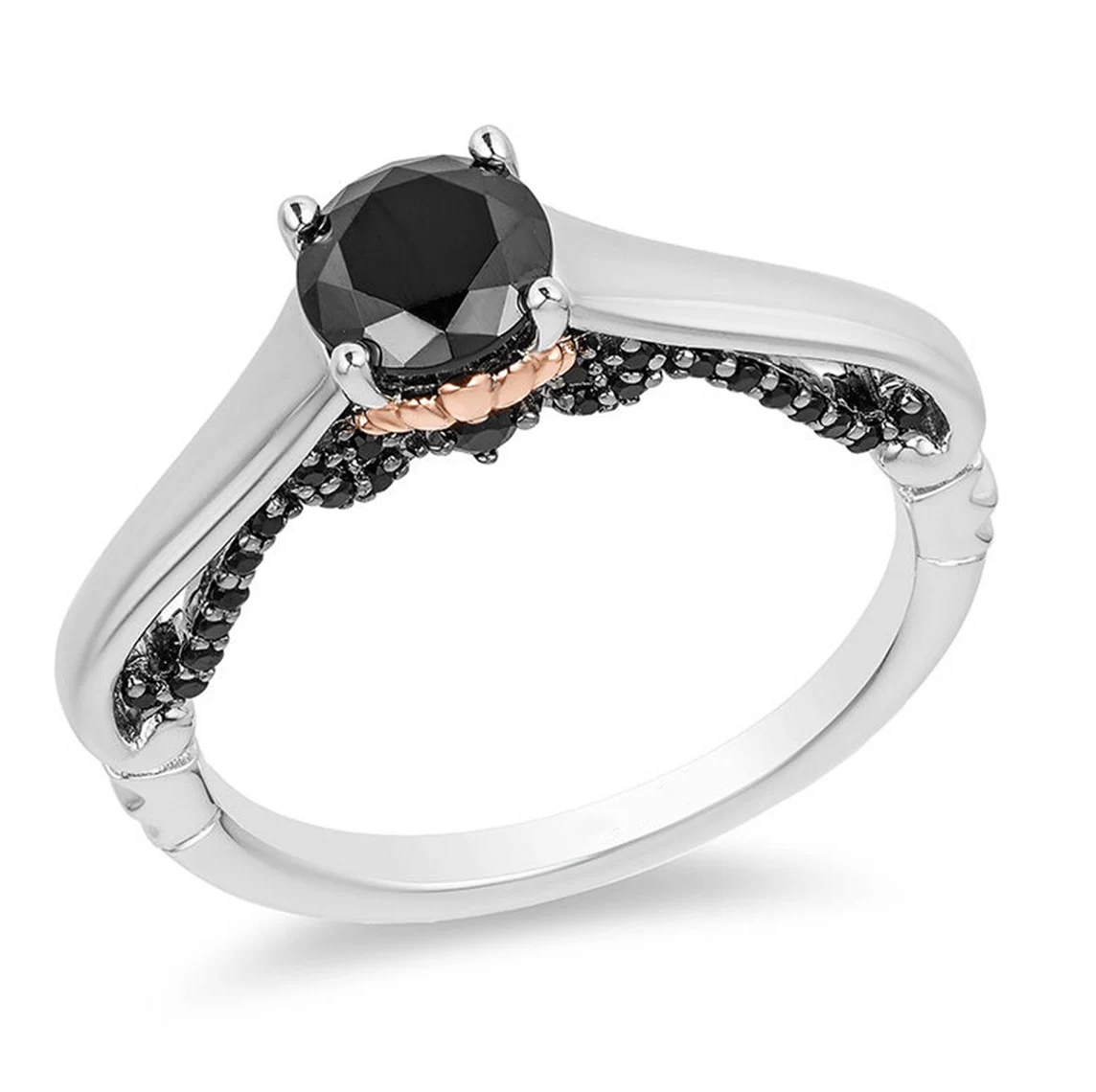 Enchanted Disney Villains Ursula 1.0 Ct Round Cut Black Diamond Engagement Ring