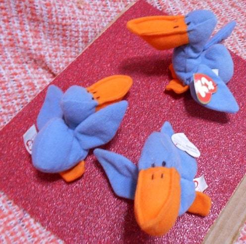 Lot of 3: Ty Beanie Babies - Smoochy the Frog, Scoup the Pelican, Freckles the Leopard; Rare w/ Tag Errors