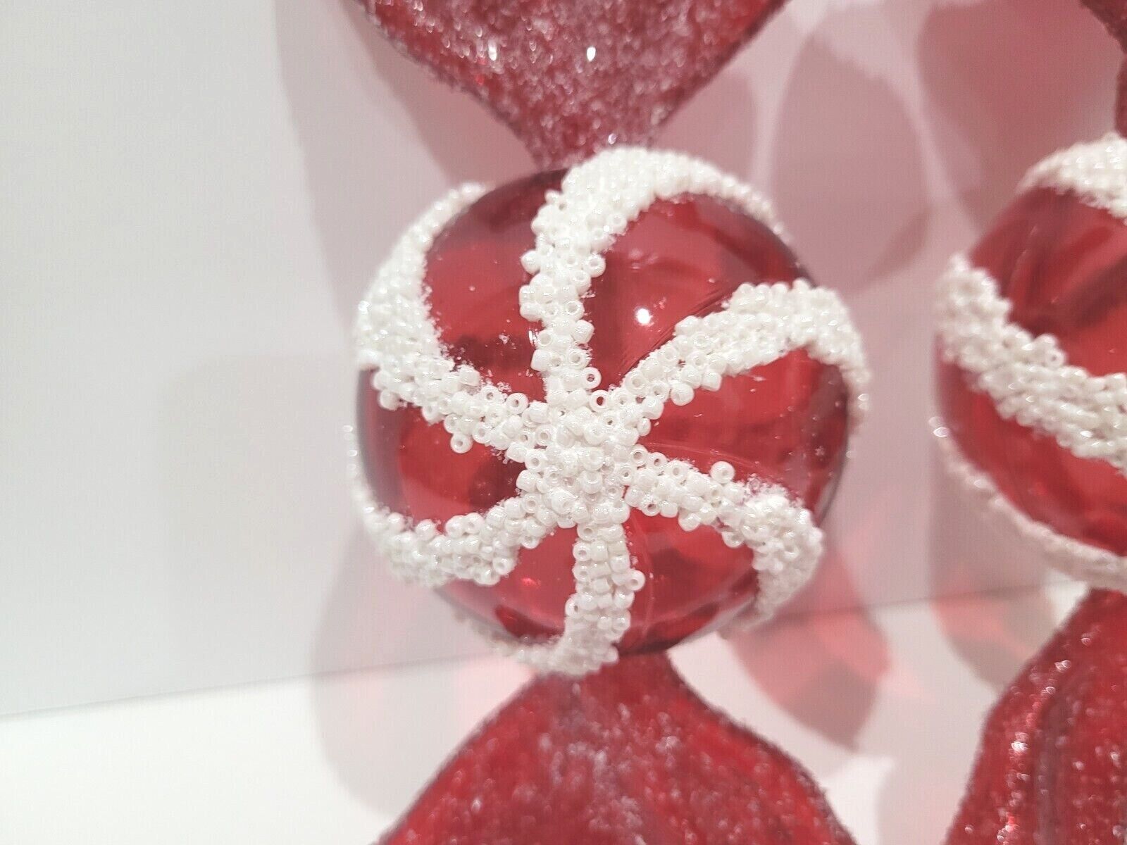 Up for sale we have these adorable plastic candy ornaments for your Christmas decor. The ornaments have tiny white beads (please not some of the beads might come off on shipping) These will look great on a tree, wreath or garland. Total length is approx 7.5" including tip. Sooo cute!! Set of 2