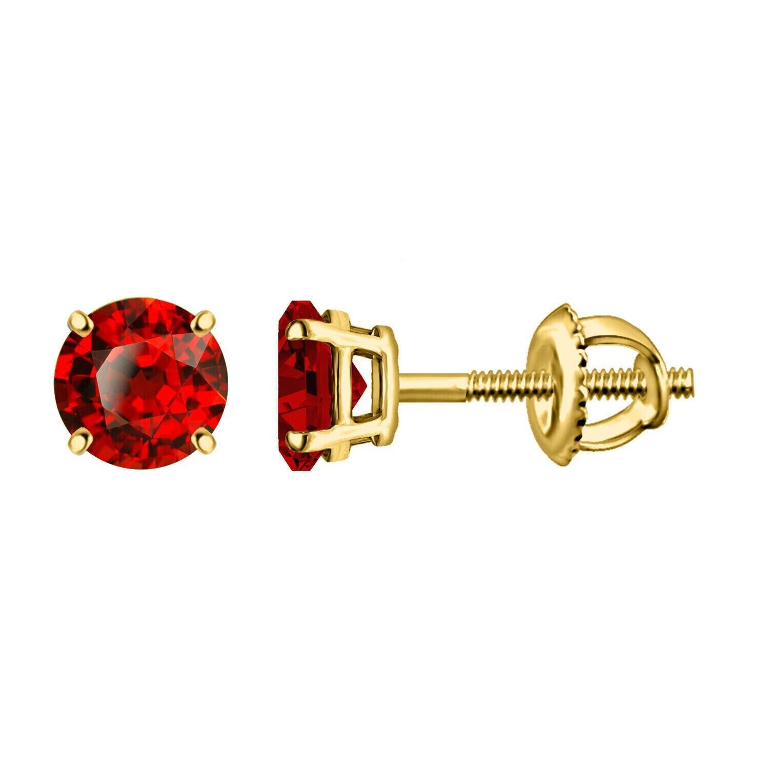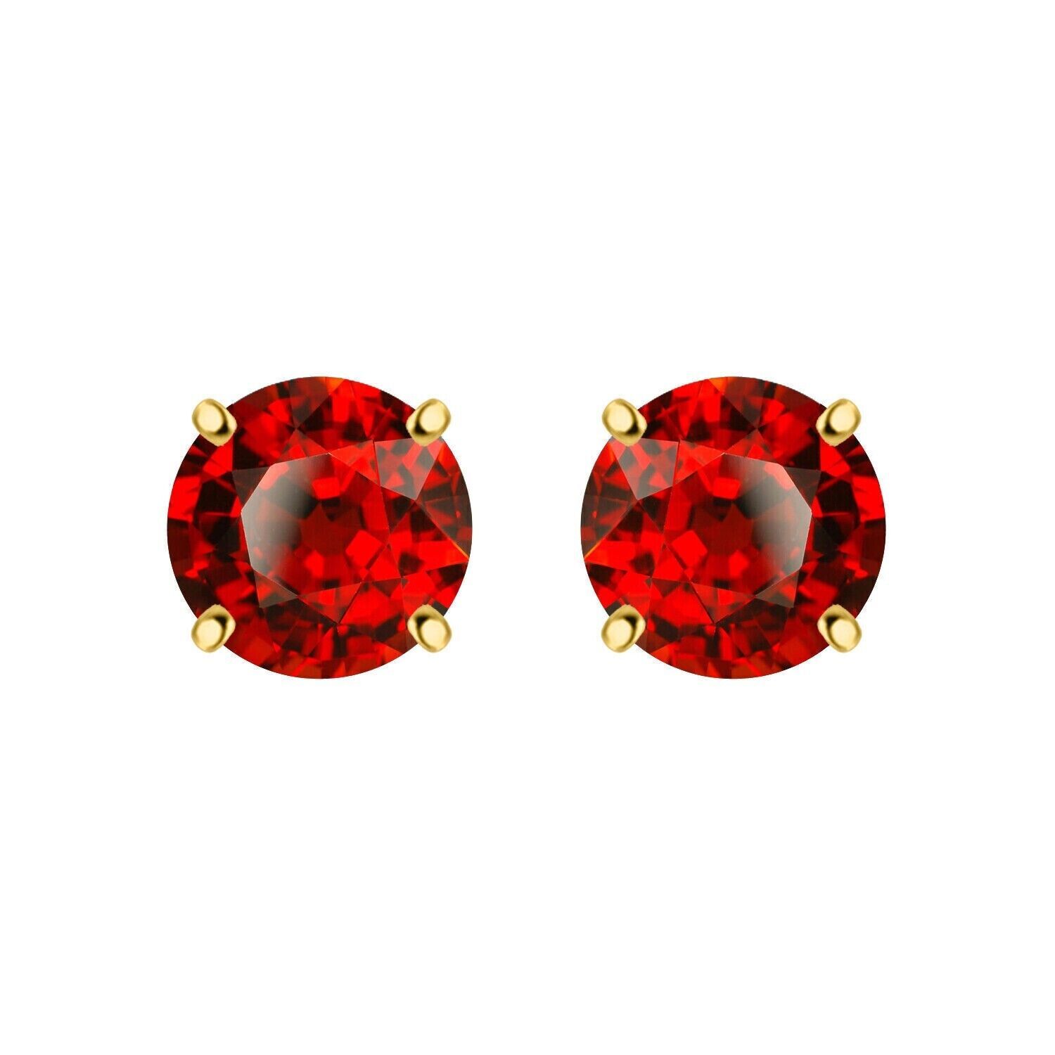 0.75Ct Round Cut Simulated Garnet Solitaire Stud Earrings 14k Yellow Gold Finish