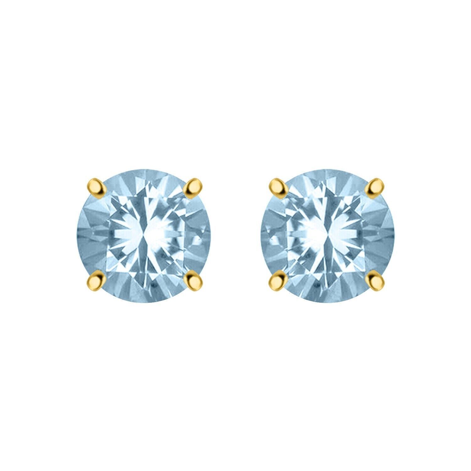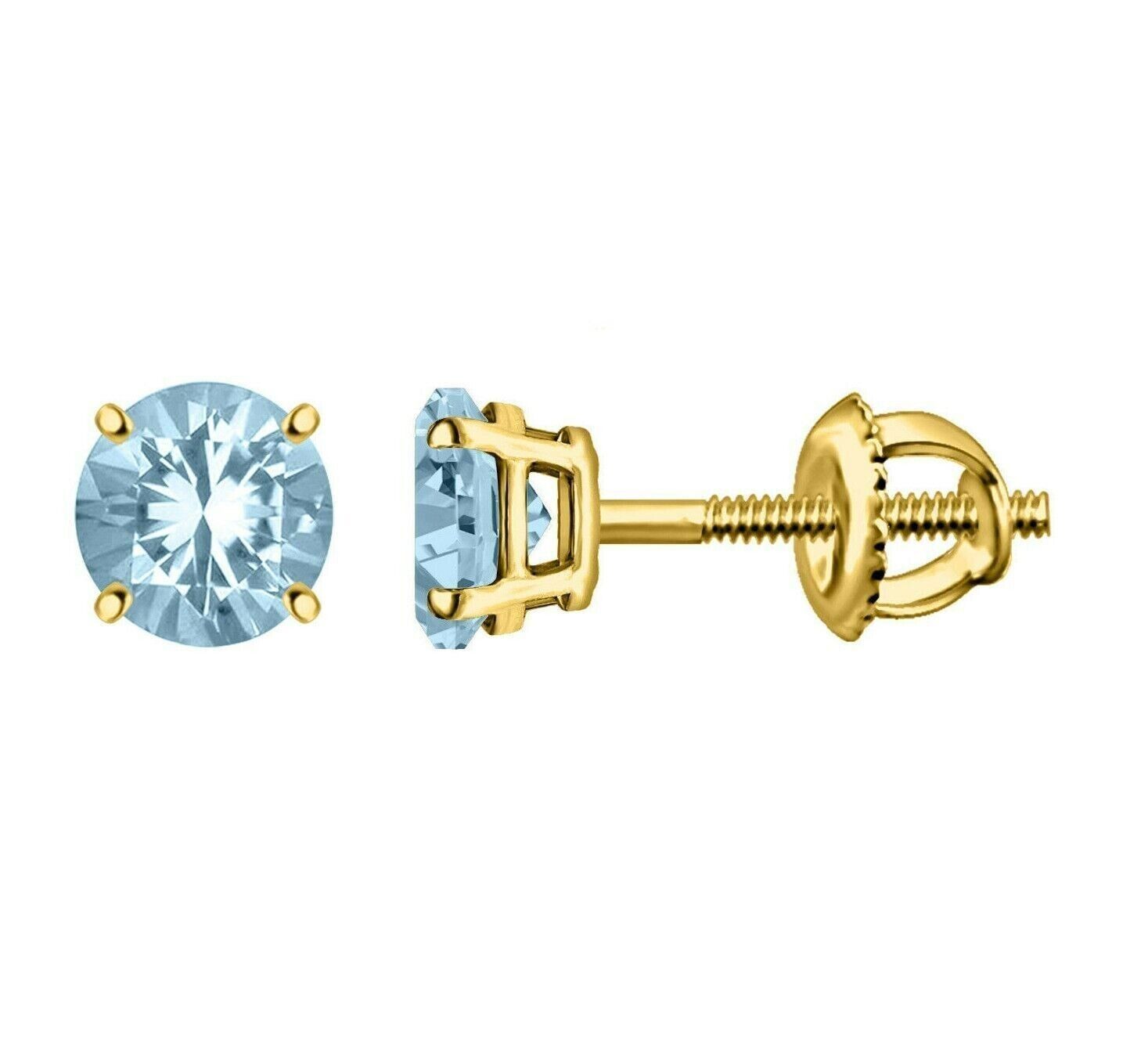 0.75Ct Round Cut Simulated Blue Aquamarine Stud Earrings 14k Yellow Gold Finish