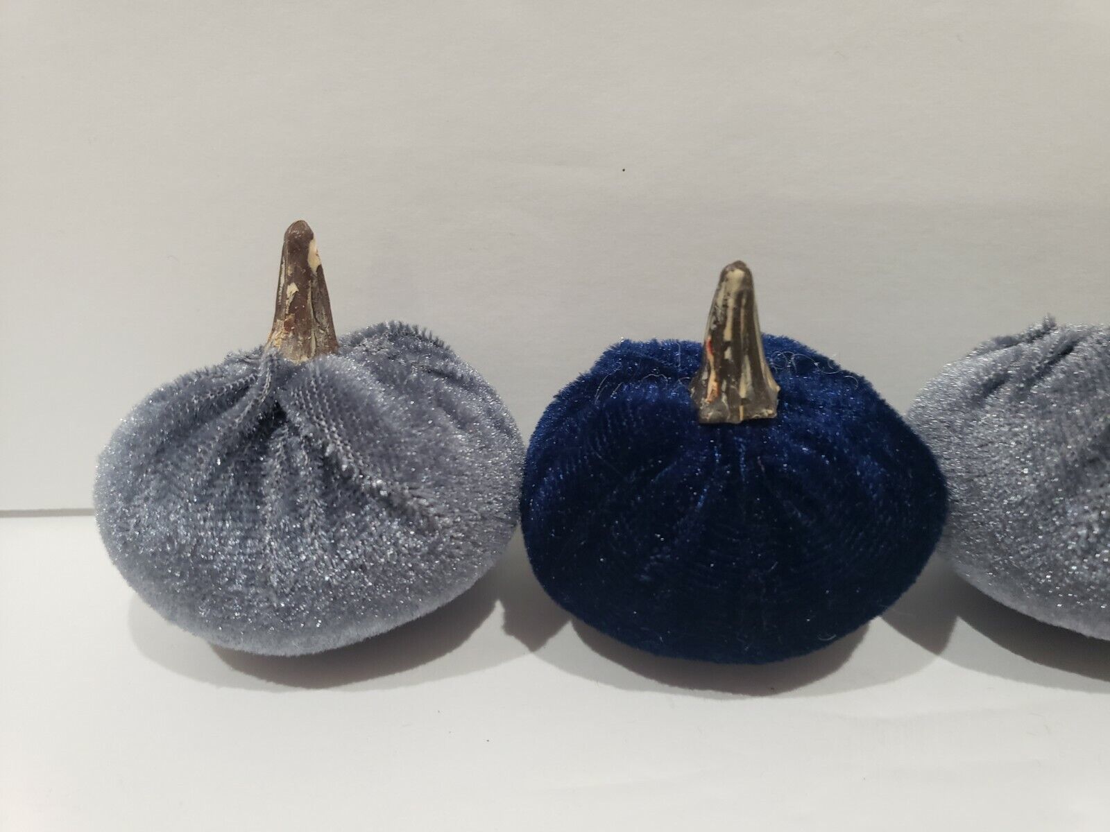 12PC VELVET BLUE MINI 2" PUMPKINS GOURDS FALL HOME DECOR THANKSGIVING CRAFTS