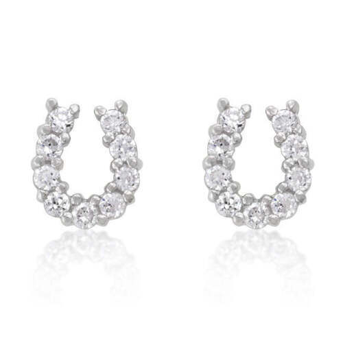 Precious Stars Sterling Silver Cubic Zirconia Horseshoe Earring Studs
