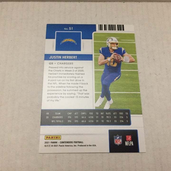 2021 Panini Contenders San Diego Chargers Justin Herbert Trading Card #51