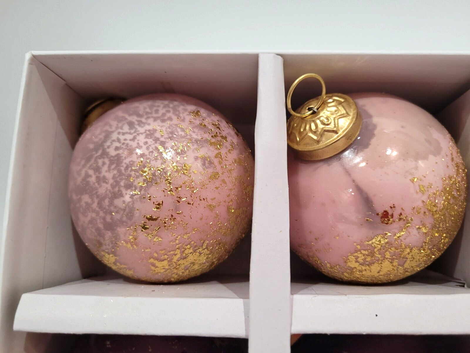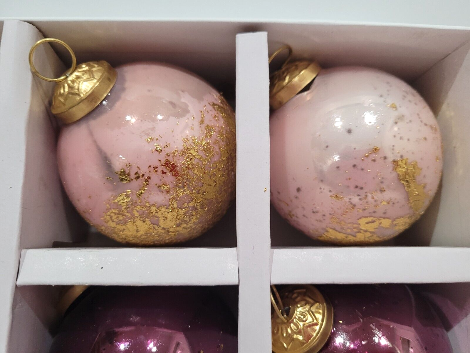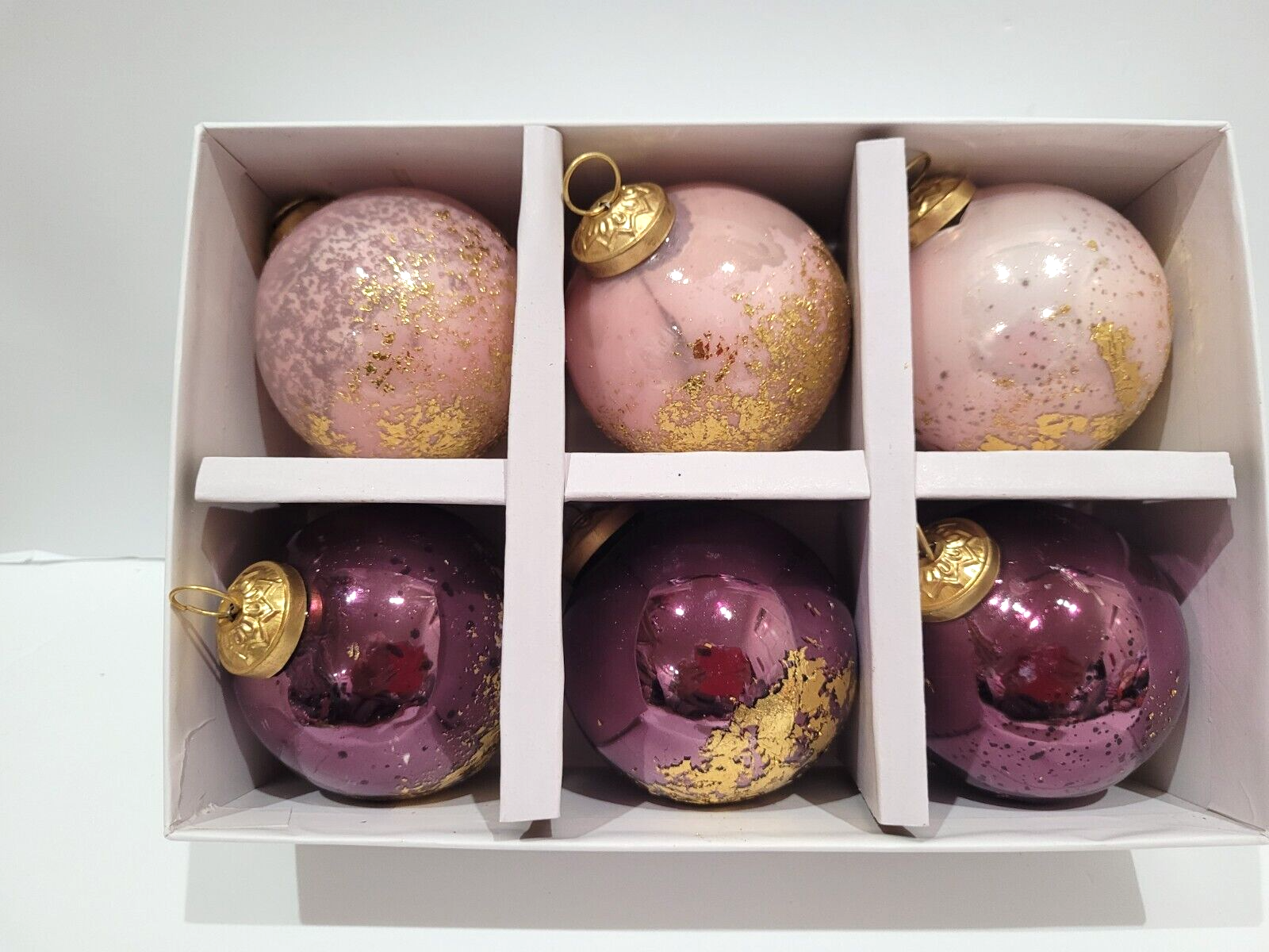 Christmas Ornaments Kugel Style Pink Gold Leaf Glass Tree Decor 6pc