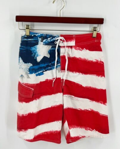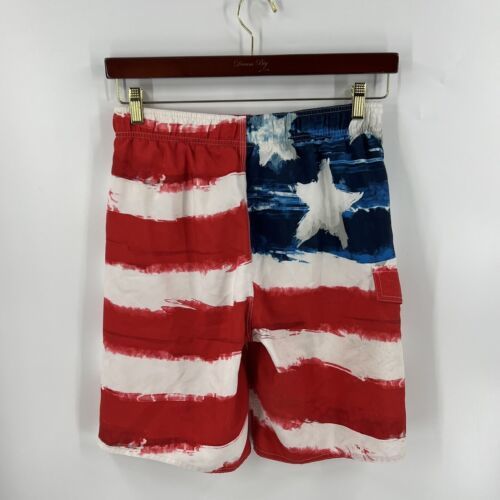 Joe Boxer Swimsuit Trunks Size Small Red White Blue Patriotic USA Flag Netting