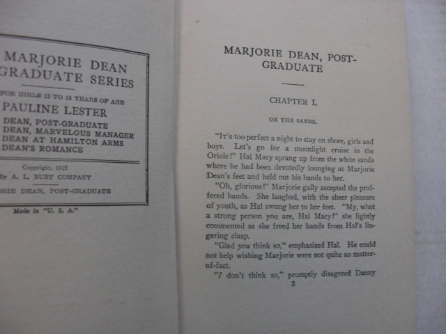 . Marjorie Dean Post Graduate: written by Pauline Lester, C. 1925, first editio