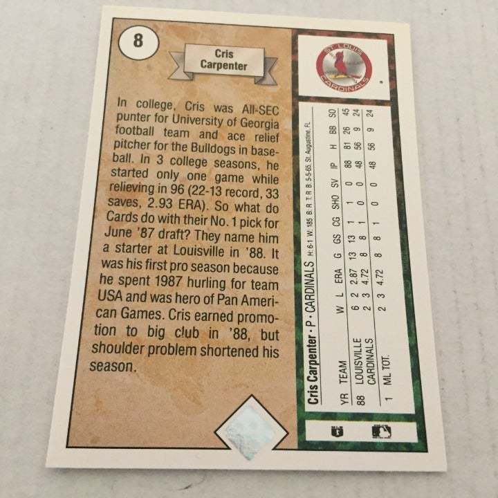 1989 Upper Deck St. Louis Cardinals Cris Carpenter Rookie Card #8