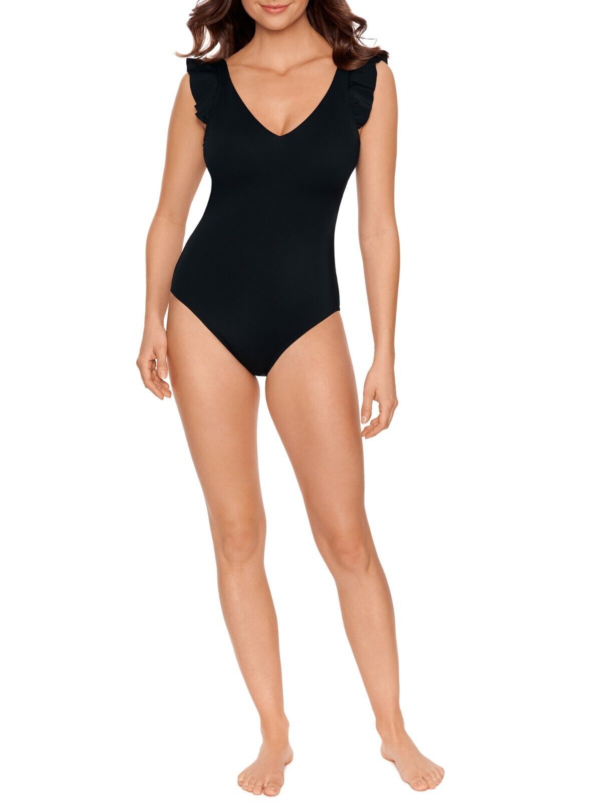Time and Tru Women’s Ruffle Strap One Piece Swimsuit, Black Size S(4-6)