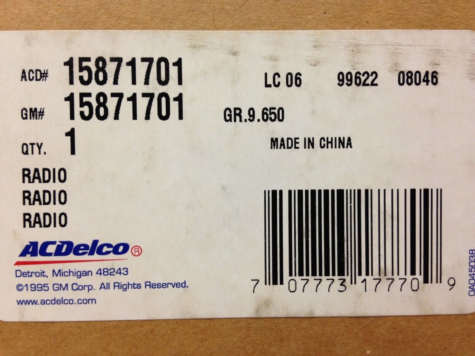 GM part # 15871701