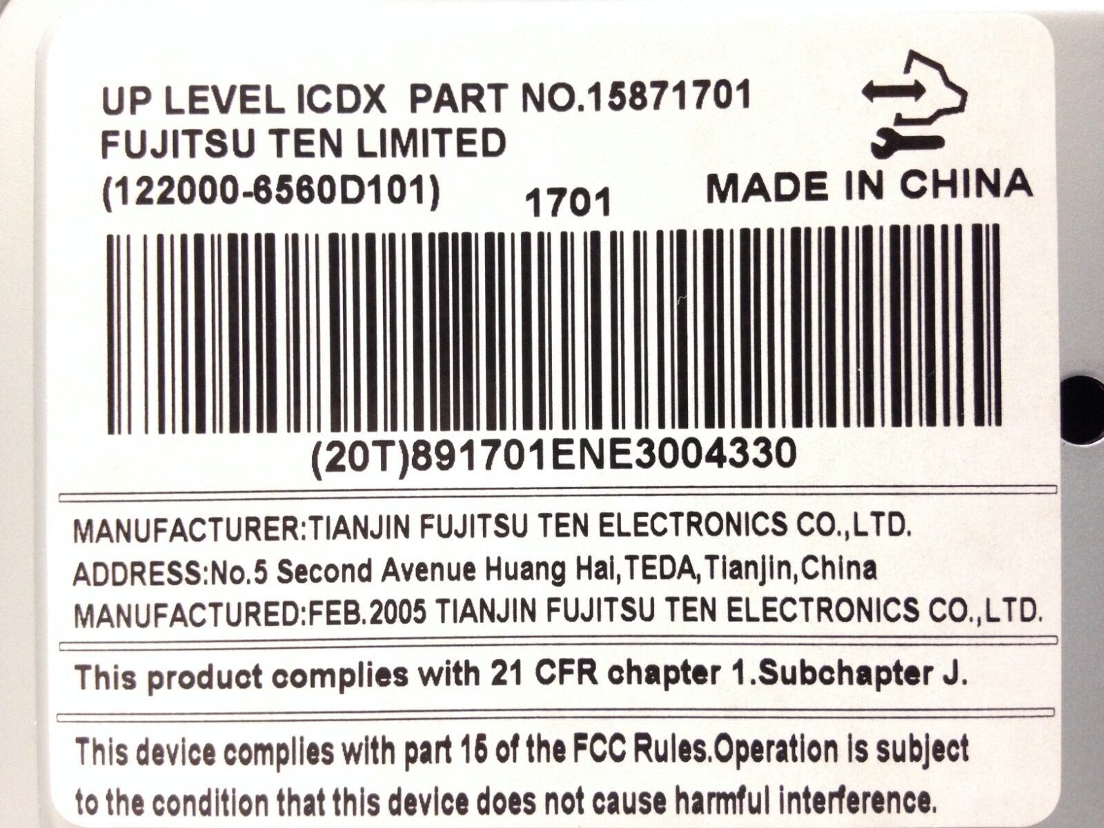 15871701, 122000-6560D101 |