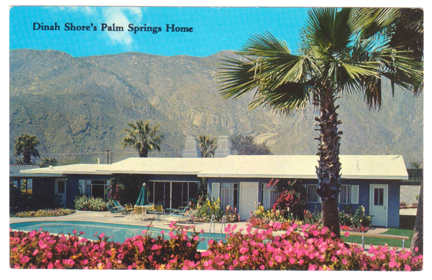 Vtg Postcard-Dinah Shore's Palm Spring Home-Pool-Mountain Landscape-Chrome-CA6