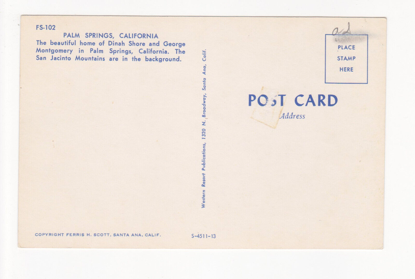Vtg Postcard-Dinah Shore's Palm Spring and 50 similar items