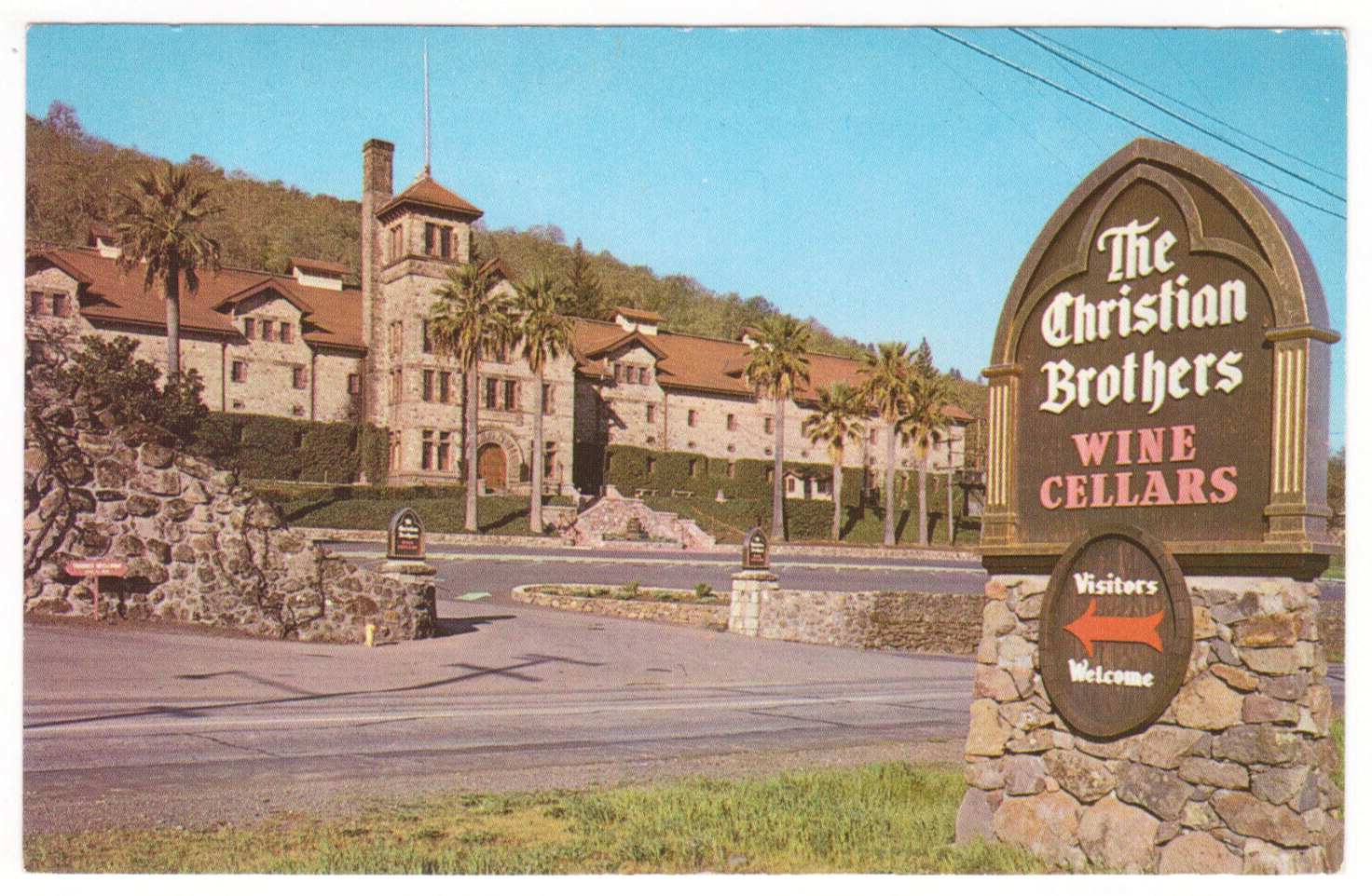 Vtg Postcard-The Christian Brothers-Wine & Champagne Celler-Street-Chrome-CA6