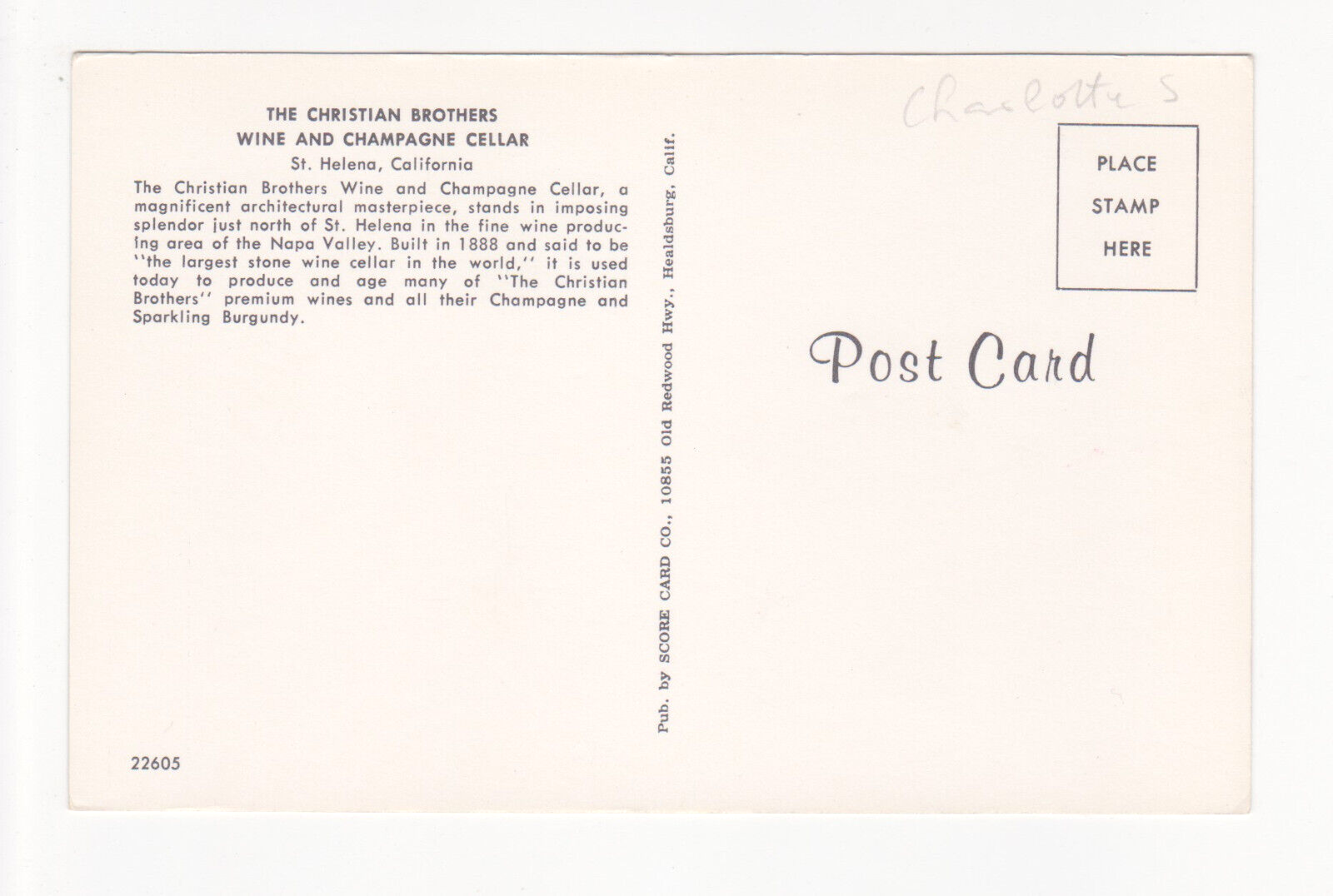 Vtg Postcard-The Christian Brothers-Wine & and 50 similar items