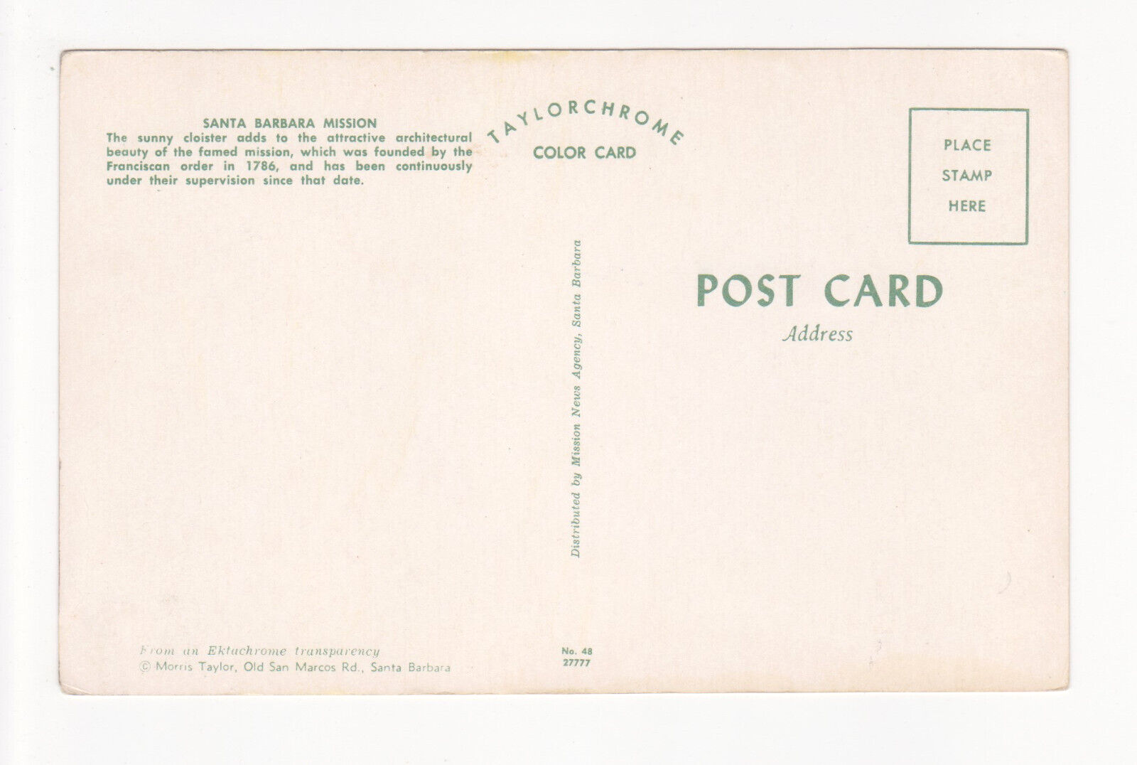 Vtg Postcard-Sana Barbara Mission CA-Architecture-Arches-Church-Chrome-CA6