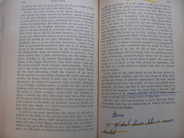 Melville began writing Moby-Dick in February 1850 and finished 18 months later, a year after he had anticipated. Melville drew on his experience as a common sailor from 1841 to 1844, including on whalers, and on wide reading in whaling literature. The white whale is modeled on a notoriously hard-to-catch albino whale Mocha Dick, and the book's ending is based on the sinking of the whaleship Essex in 1820. The detailed and realistic descriptions of whale hunting and of extracting whale oil, as well as life aboard ship among a culturally diverse crew, are mixed with exploration of class and social status, good and evil, and the existence of God. The book's literary influences include Shakespeare, Carlyle and the Bible. In addition to narrative prose, Melville uses styles and literary devices ranging from songs, poetry, and catalogs to Shakespearean stage directions, soliloquies, and asides. In August 1850, with the manuscript perhaps half finished, he met Nathaniel Hawthorne and was deeply impressed by his Mosses from an Old Manse, which he compared to Shakespeare in its cosmic ambitions. This encounter may have inspired him to revise and deepen Moby-Dick, which is dedicated to Hawthorne, "in token of my admiration for his genius".