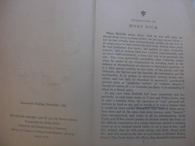 Moby Dick or The Whale: written by Herman Melville with introduction by Newton A