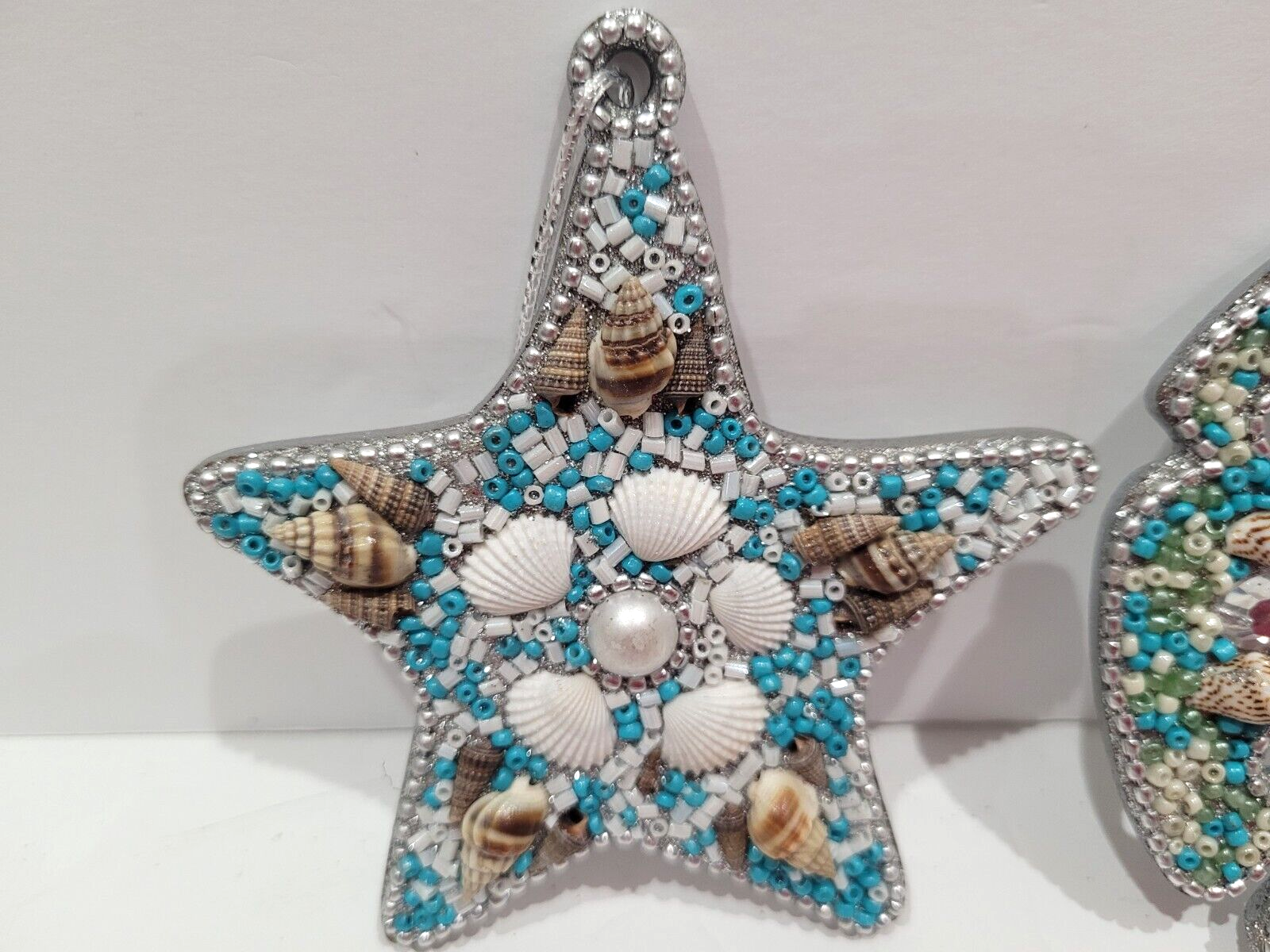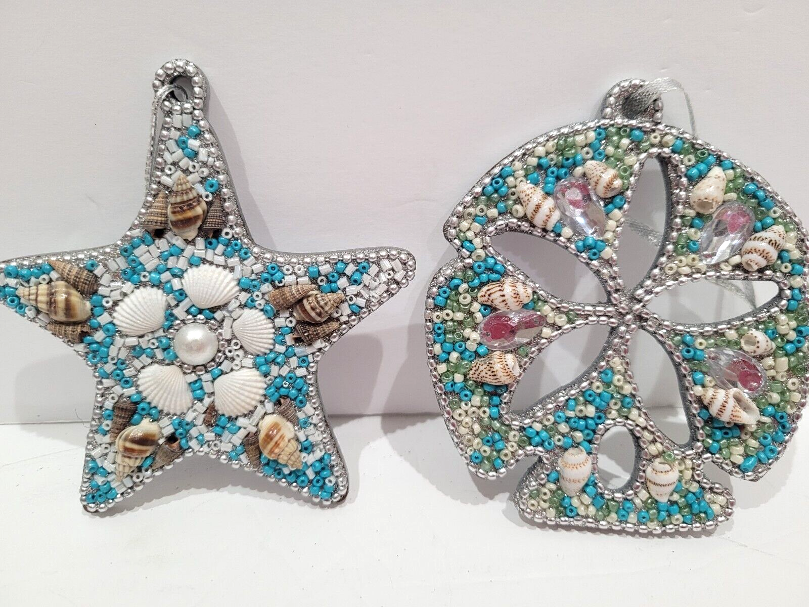 Up for sale we have a set of (2) stunning ornaments for your Christmas Coastal tree decor. These are soooo pretty! The starfish and sand dollar have beading and small seashells. These are gorgeous!! These starfish measure approx 3.75" tall including the round tip and the sand dollar is just under 4". These would look great on a tree, wreath or garland. New not tags. I have many more coastal ornaments listed.