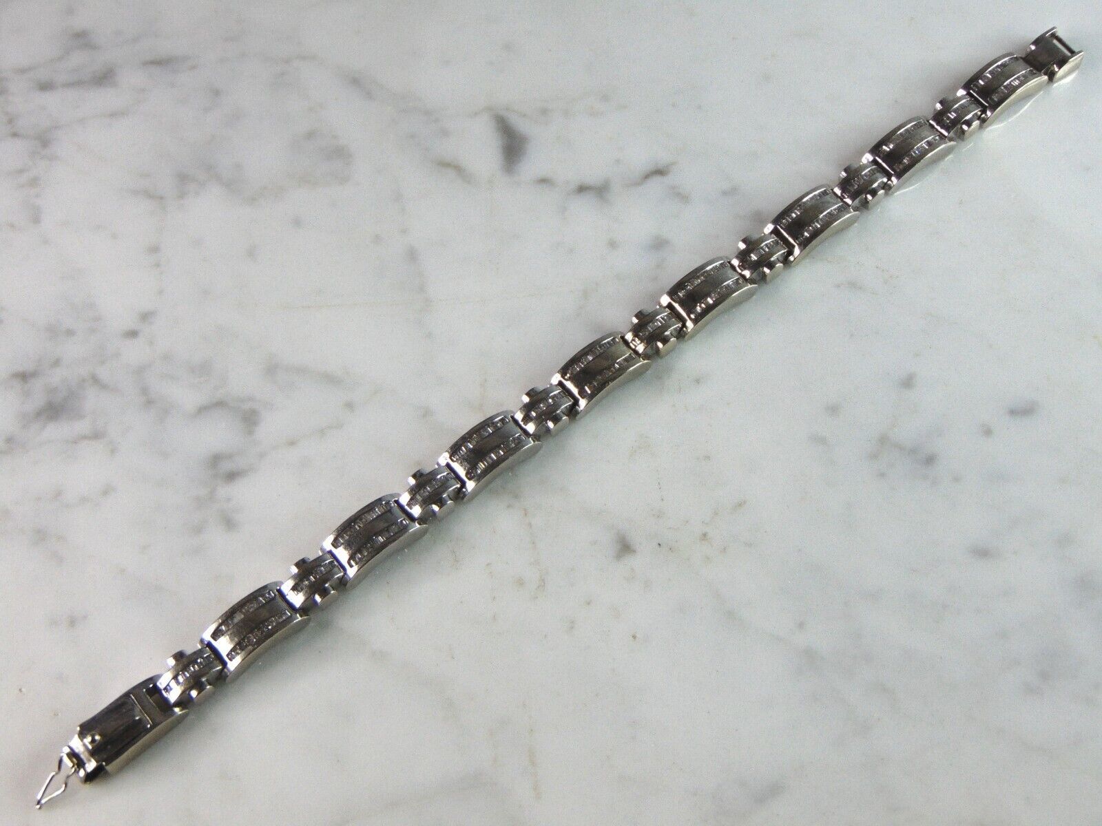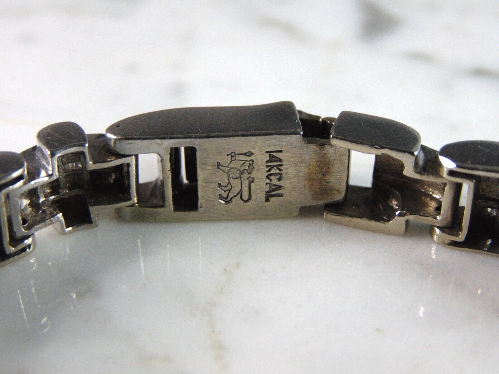 A MENS VINTAGE ESTATE HEAVY 14K WHITE GOLD DIAMOND BRACELET WITH ABOUT 6cts IN DIAMONDS. THE BRACELET MEASURES 9" LONG BY 3/8" WIDE. AND WEIGHS 48.4g. WOULD MAKE A GREAT GIFT FOR THAT SPECIAL SOMEONE. ANY QUESTIONS PLEASE DO NOT HESITATE TO ASK. BE SURE TO CHECK OUT SOME OF MY OTHER GREAT ITEMS UP FOR SALE. THANK YOU.