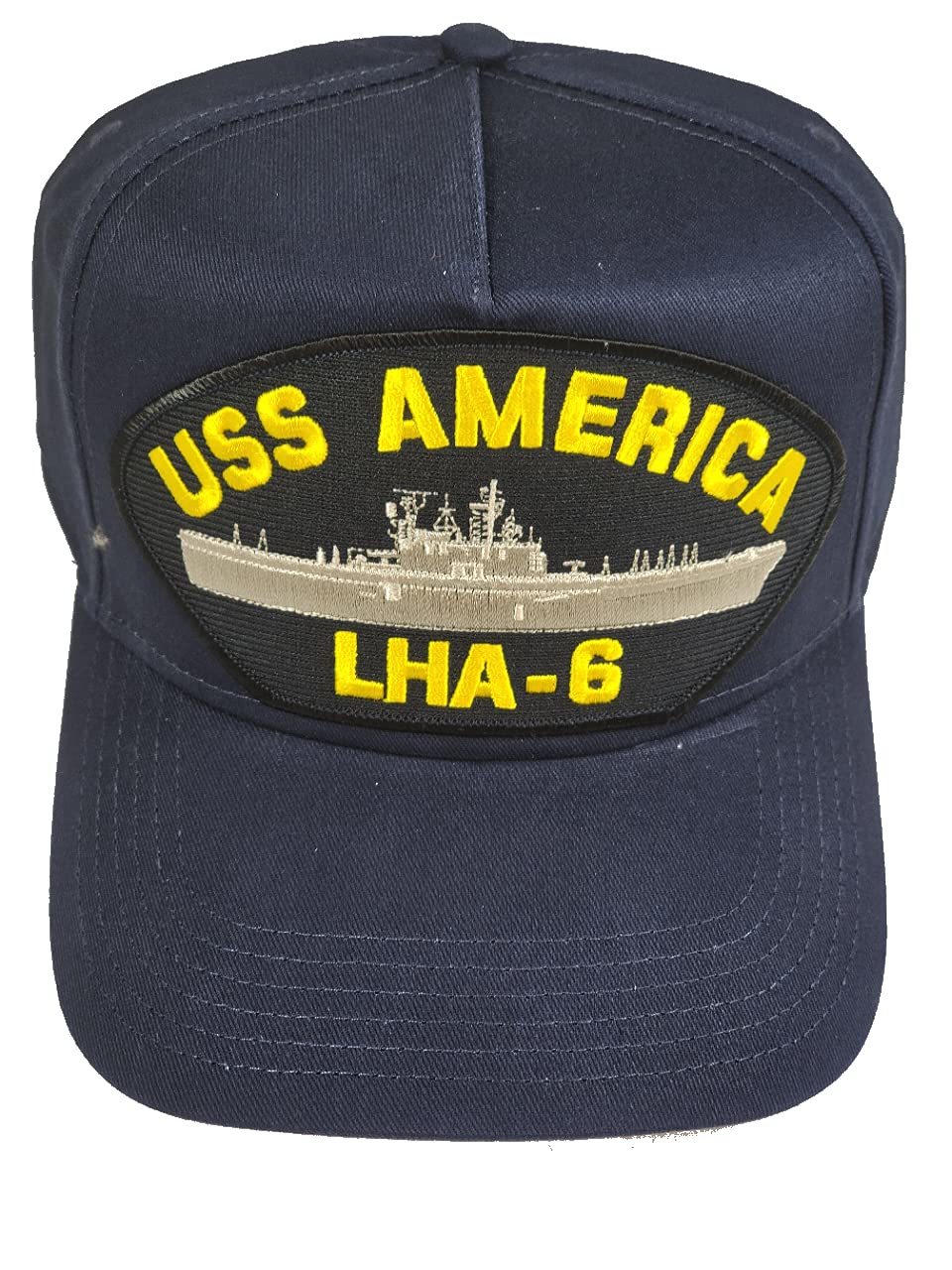 USS AMERICA LHA-6 SHIP HAT. Amphibious assault ship. U.S. warship. Navy Blue Cap High Detail and Impact. 8 Rows Stitching on Visor and Pro Stitch on Crown 5 panel hat. Adjustable Size, Navy Blue Golf Style. Great Gift Idea for ANYONE, especially those sailors or crews who served on the USS AMERICA. HatnPatch Is THE Veteran Owned Family Business. We Generally Ship Orders Within 24 Hours And Usually The SAME DAY!
