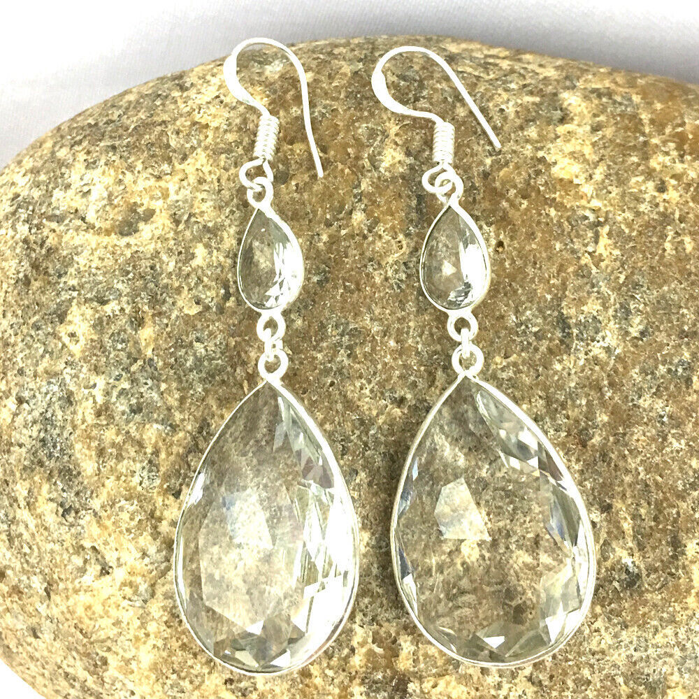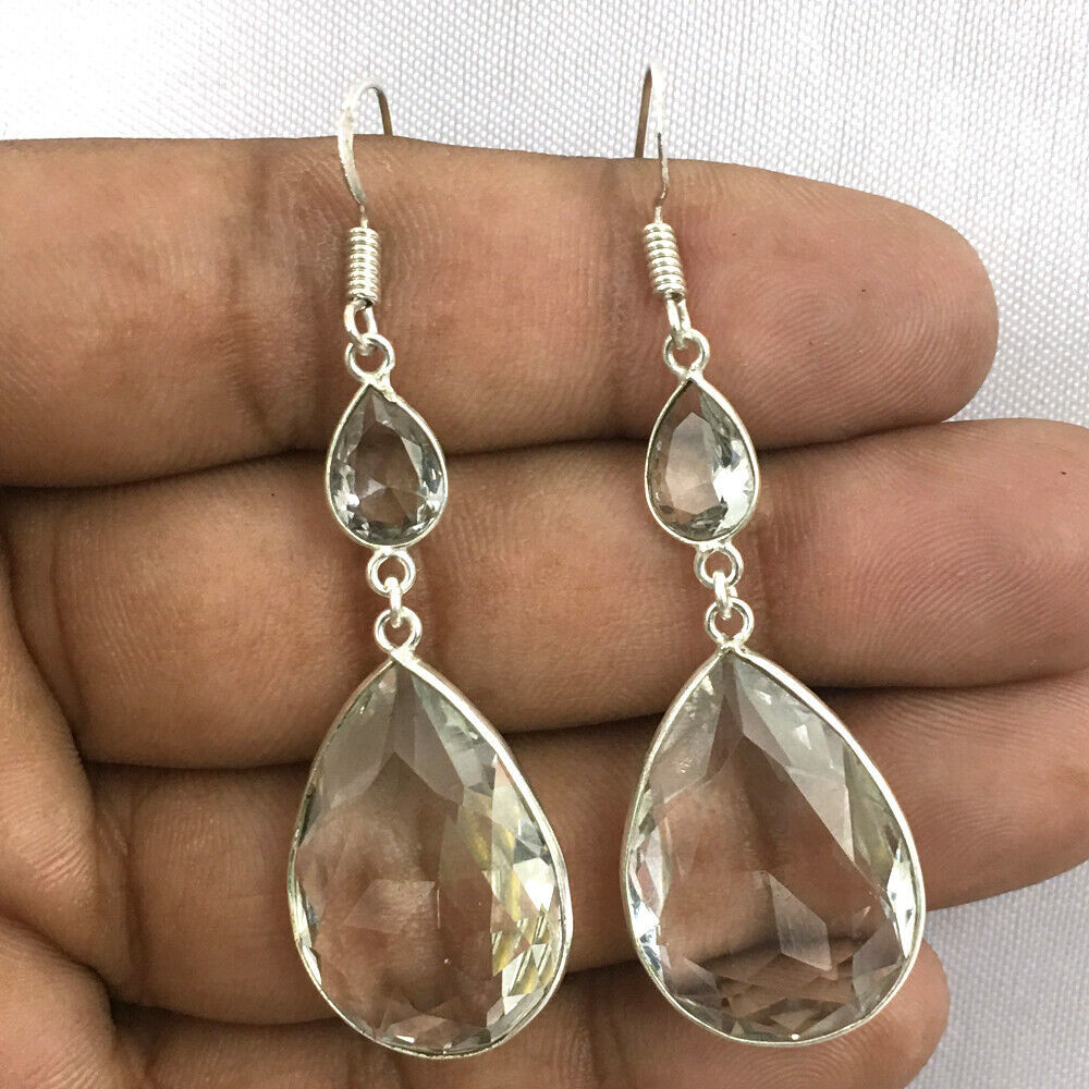 925 Sterling Silver Handmade Crystal Quartz Bezel Earrings Gift Women BES-1163
