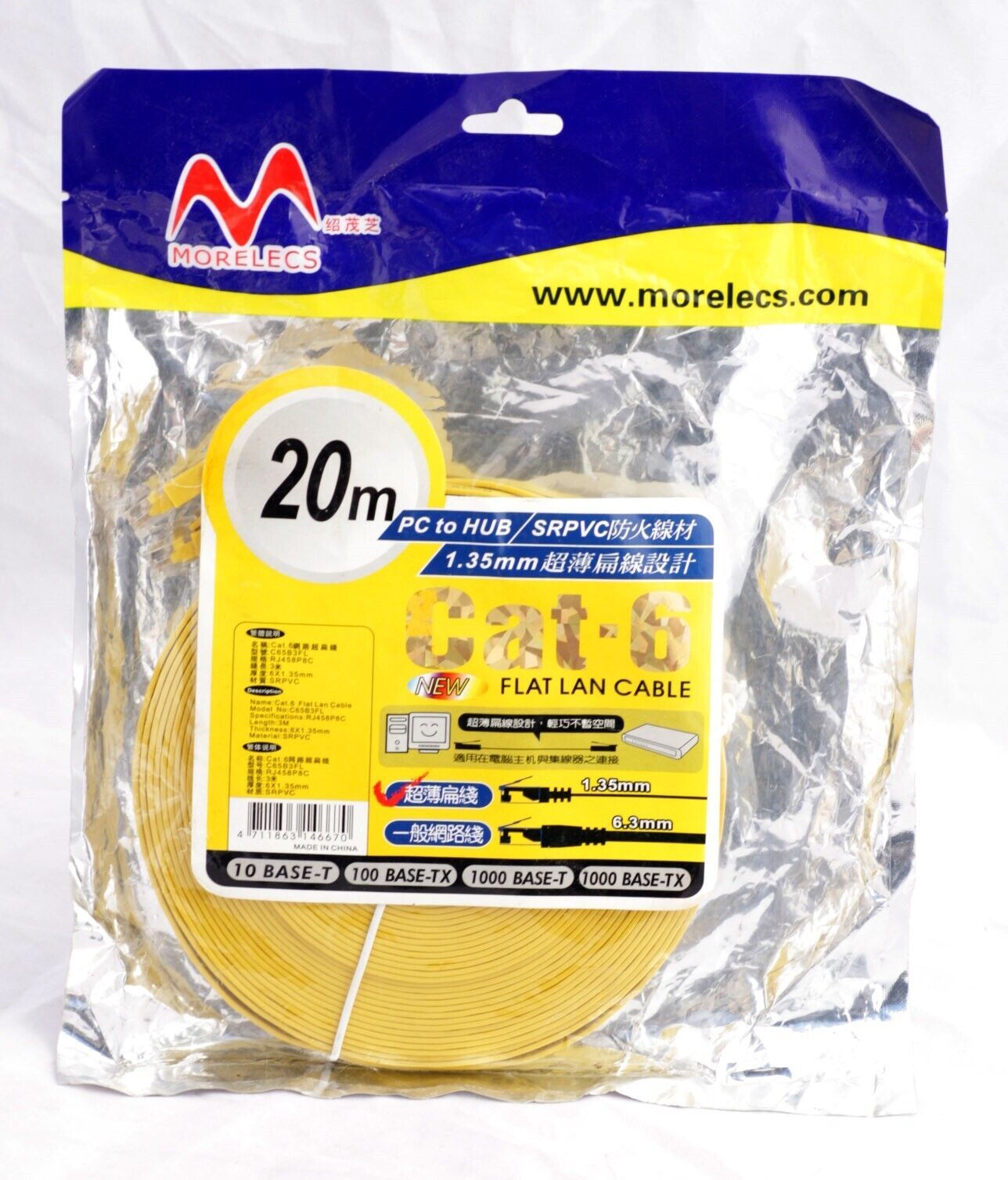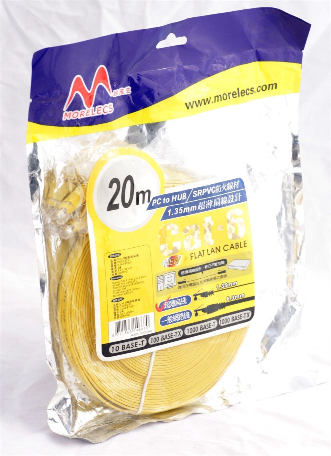 Cat6 Ethernet Cable 66FT 20M Cat-6 Flat RJ45 8P8C Computer Internet LAN Network
